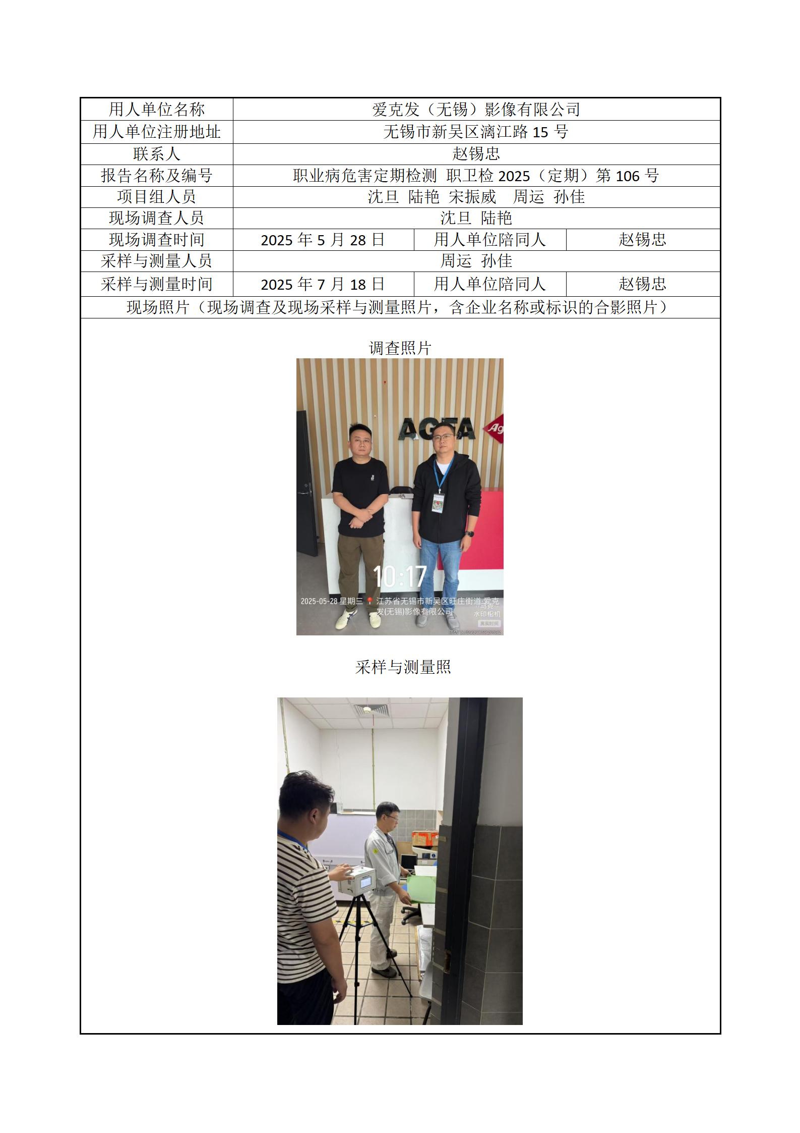 现场采样每日上报(爱克发(无锡)影像有限公司)