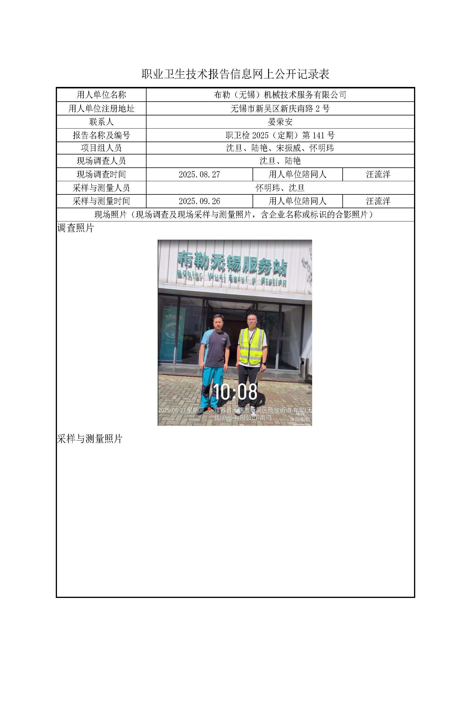 【职业卫生报告】布勒(无锡)机械技术服务有限公司