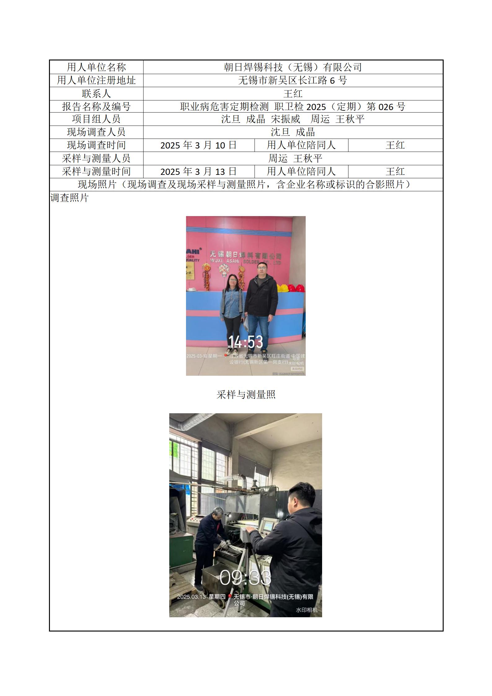 现场采样每日上报(朝日焊锡科技(无锡)有限公司)