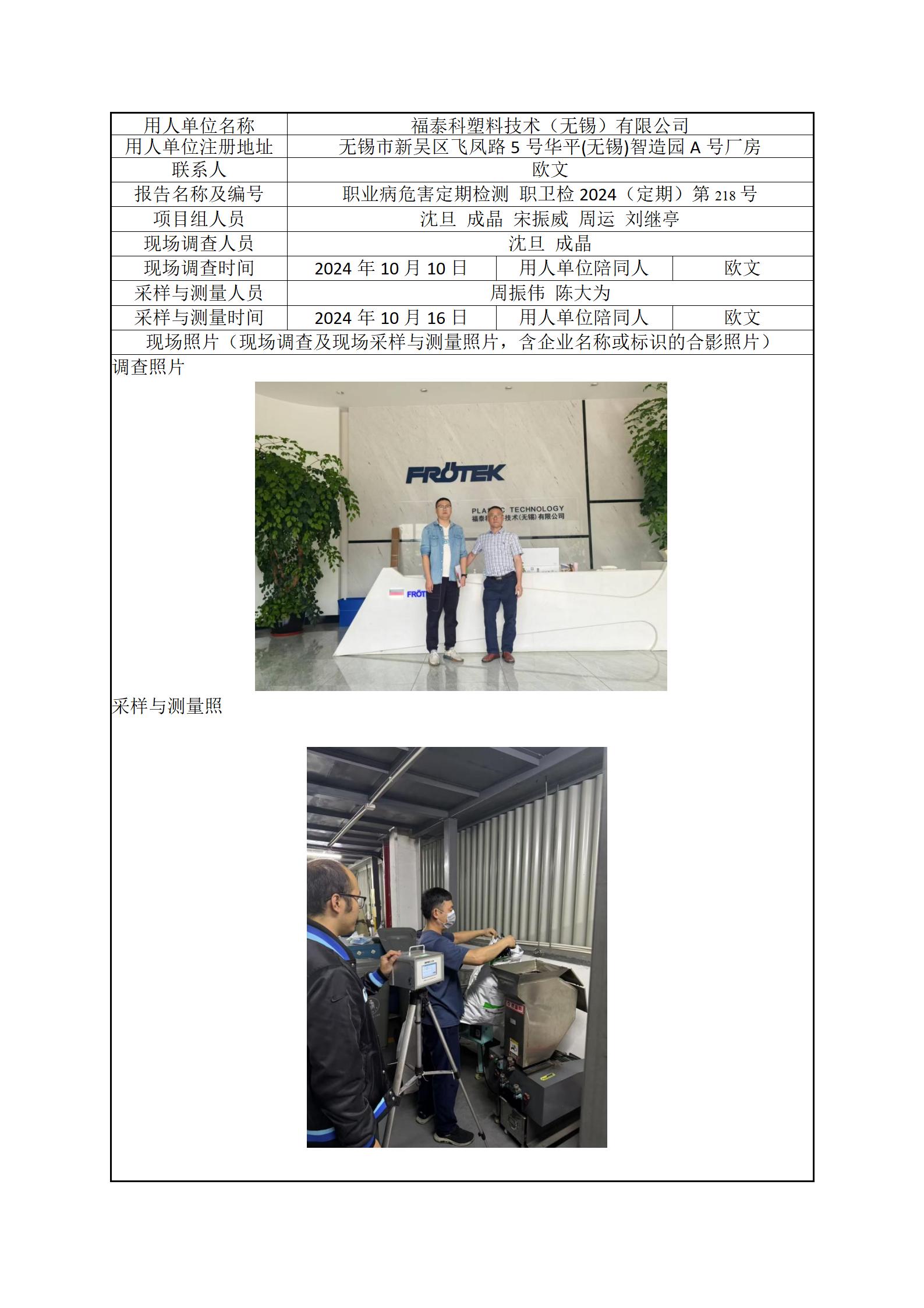 现场采样每日上报(福泰科塑料技术(无锡)有限公司)
