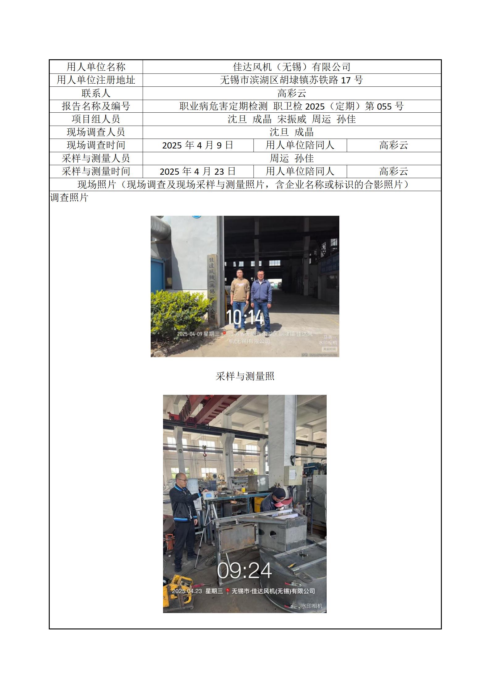 现场采样每日上报(佳达风机(无锡)有限公司)
