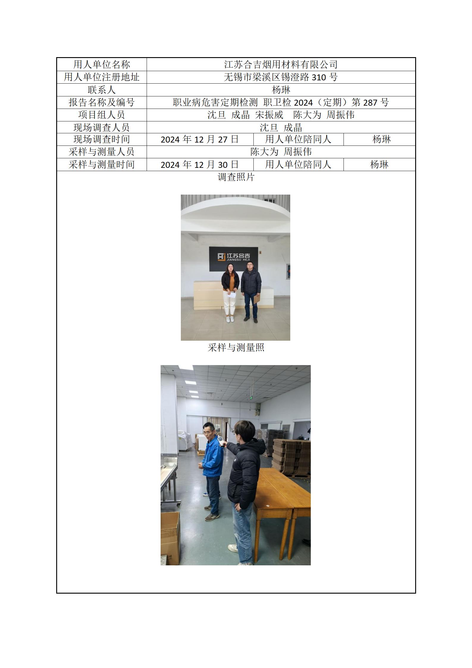 现场采样每日上报(江苏合吉烟用材料有限公司)