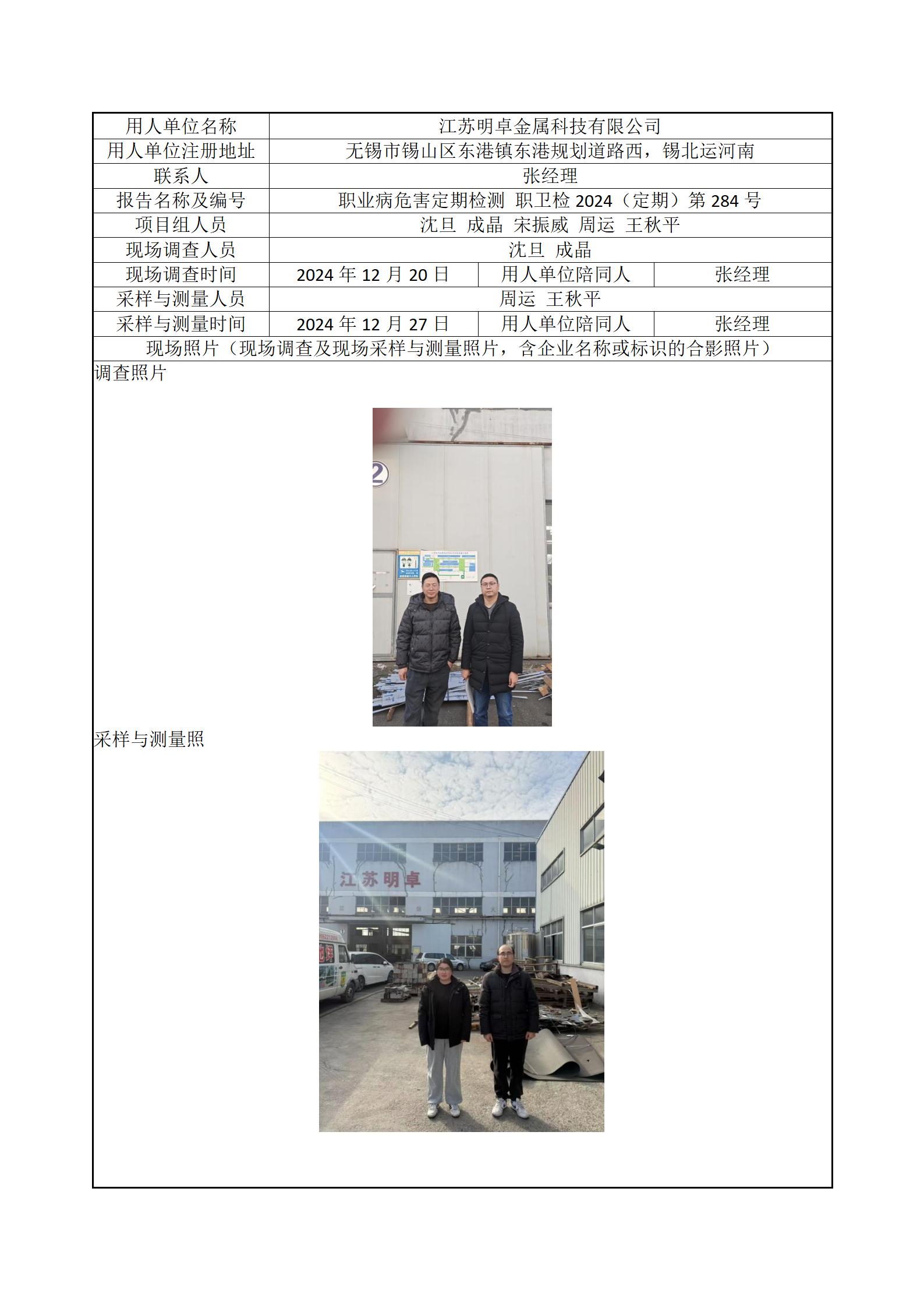 现场采样每日上报(江苏明卓金属科技有限公司)