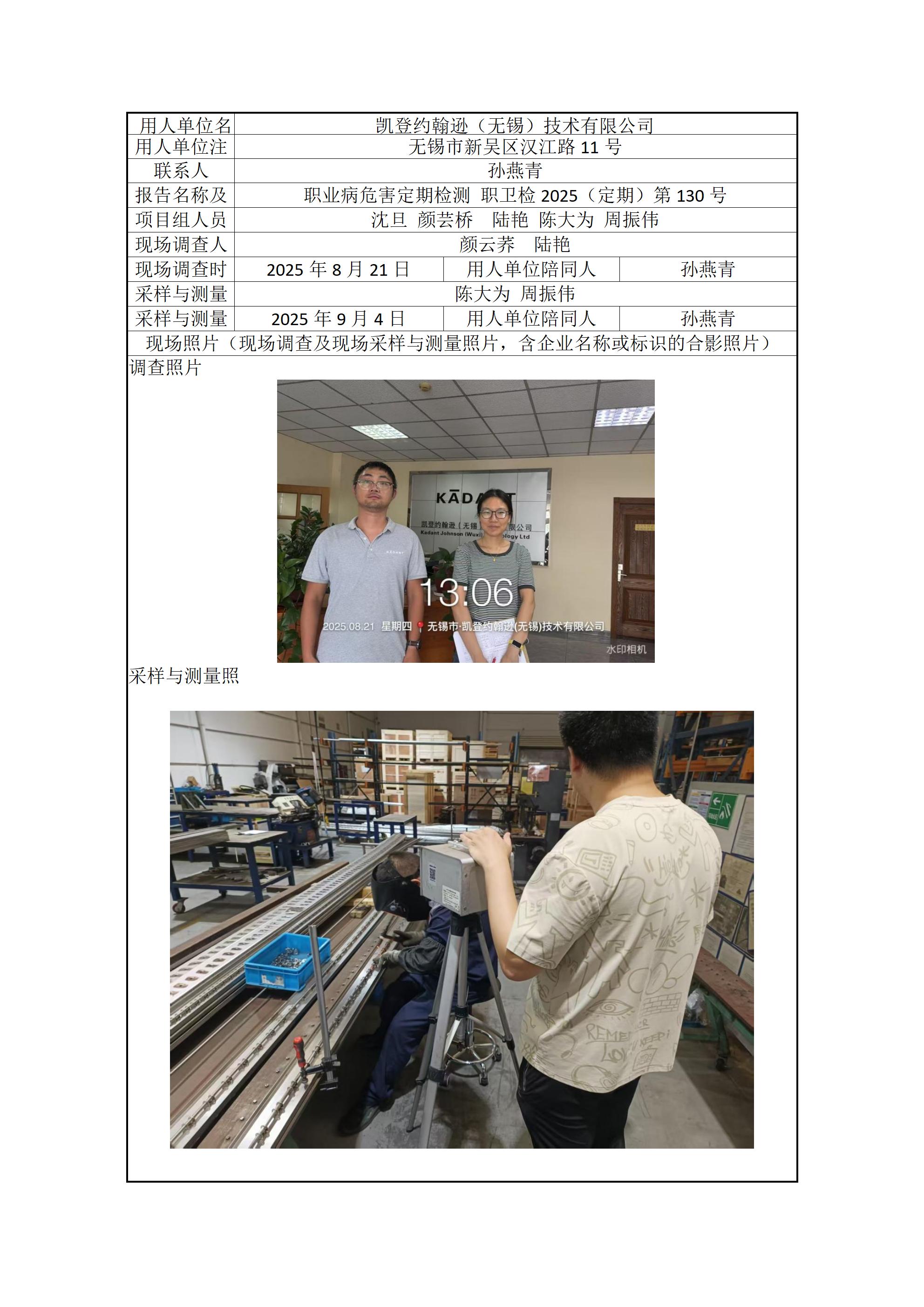 现场采样每日上报(凯登约翰逊(无锡)技术有限公司)