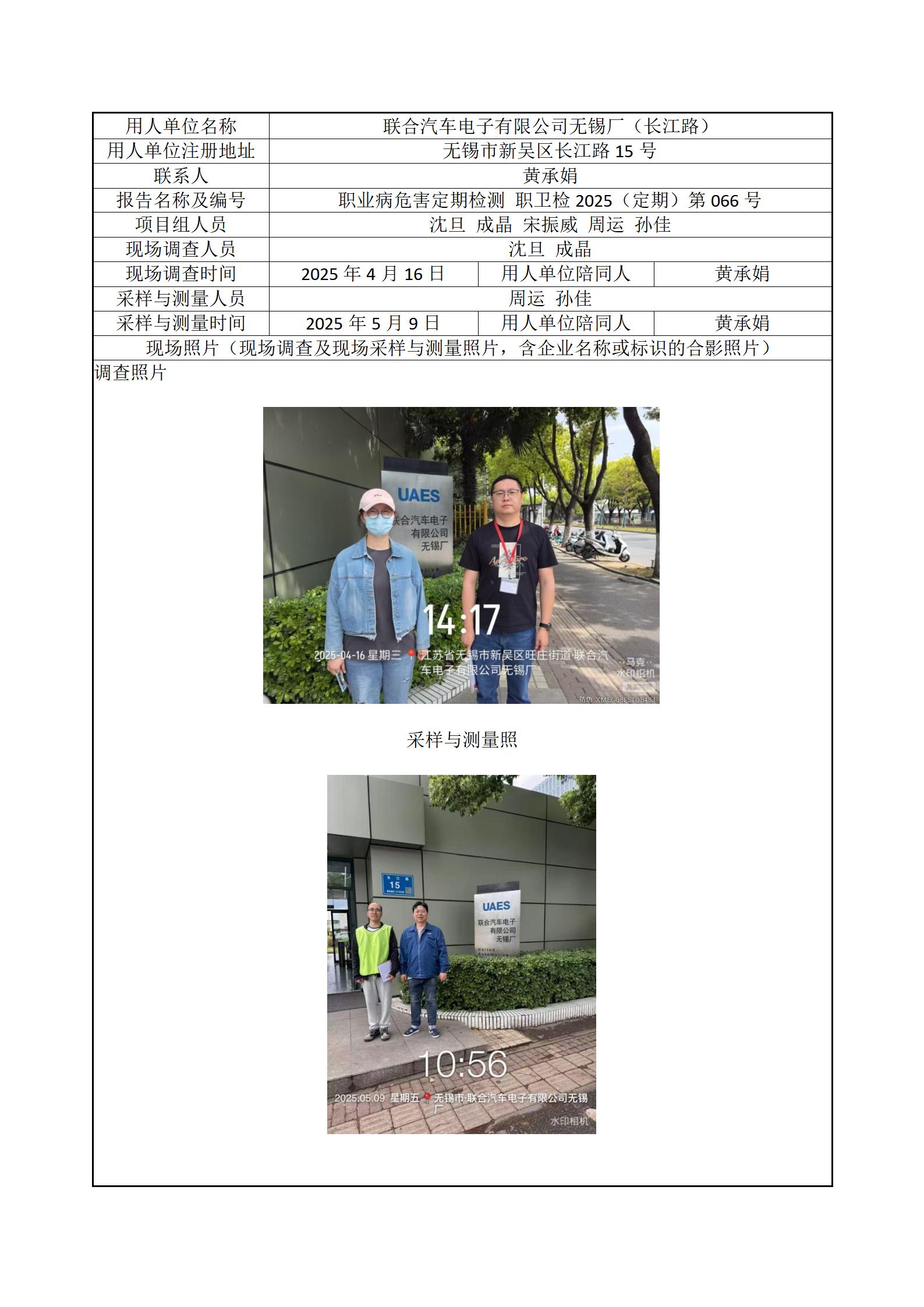 上一篇文章: 现场采样每日上报(联合汽车电子有限公司无锡厂(锡梅路))
