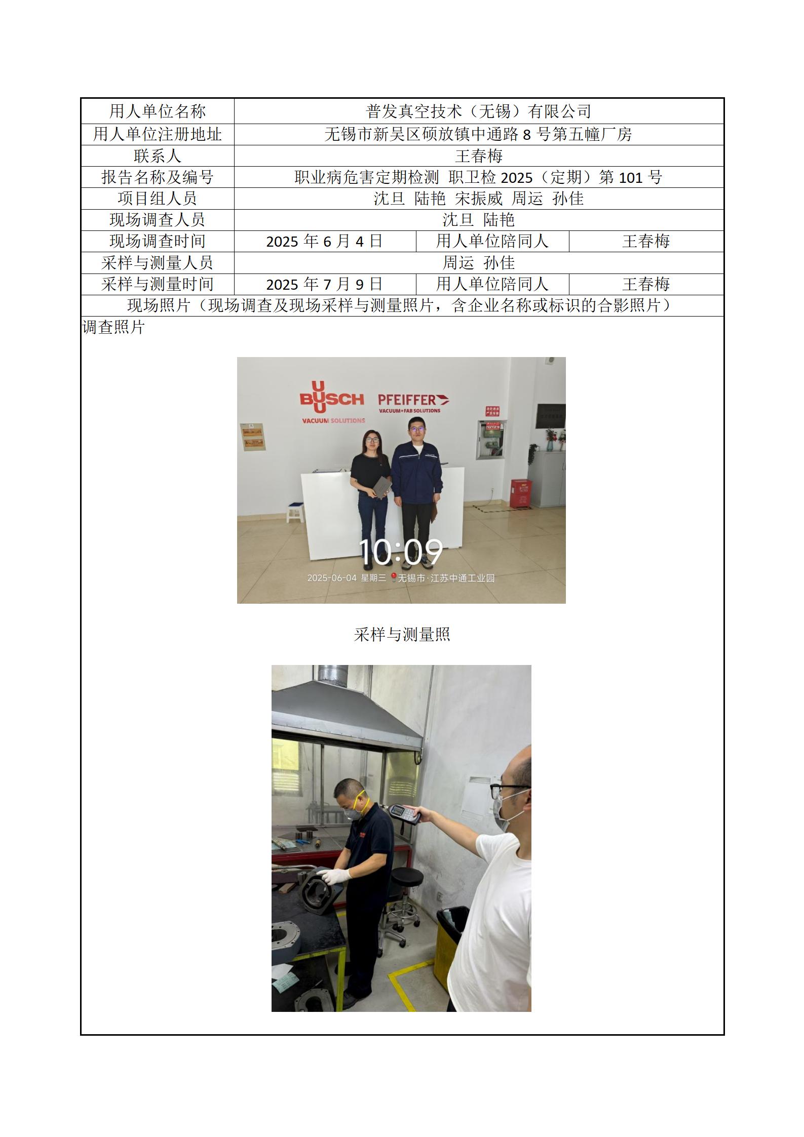 现场采样每日上报(普发真空技术(无锡)有限公司)