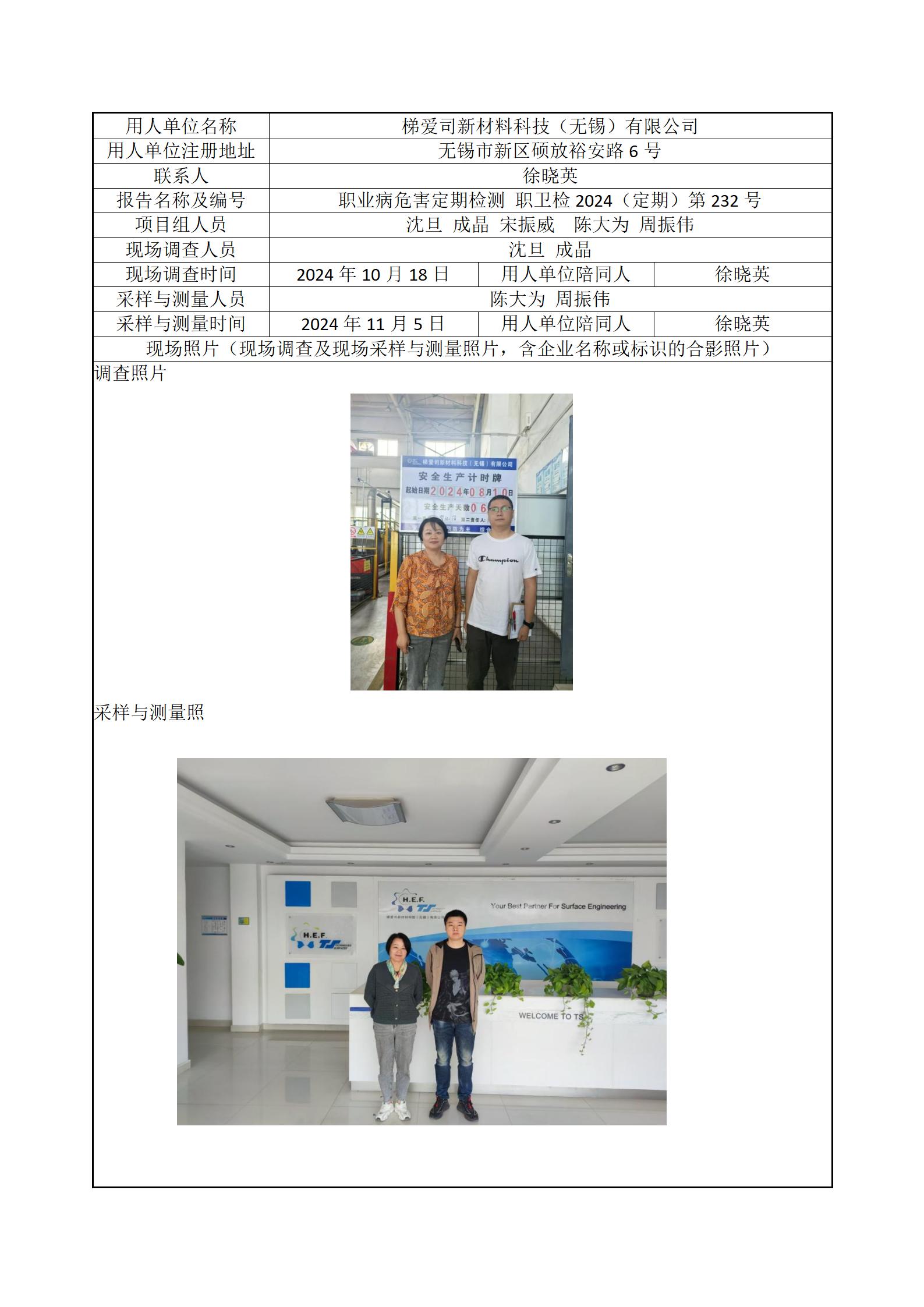 现场采样每日上报(梯爱司新材料科技(无锡)有限公司)