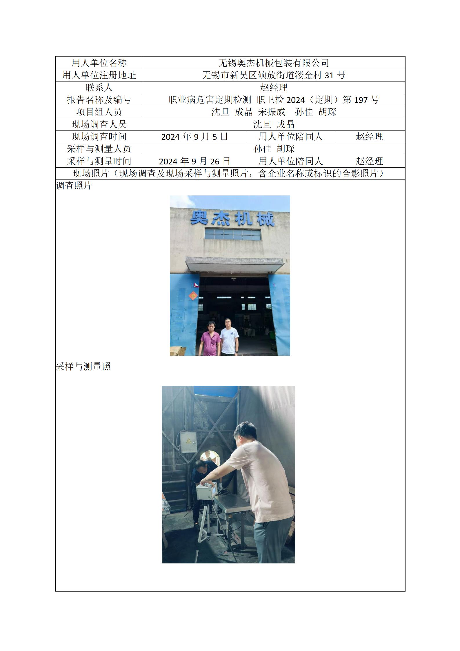 现场采样每日上报(无锡奥杰机械包装有限公司)