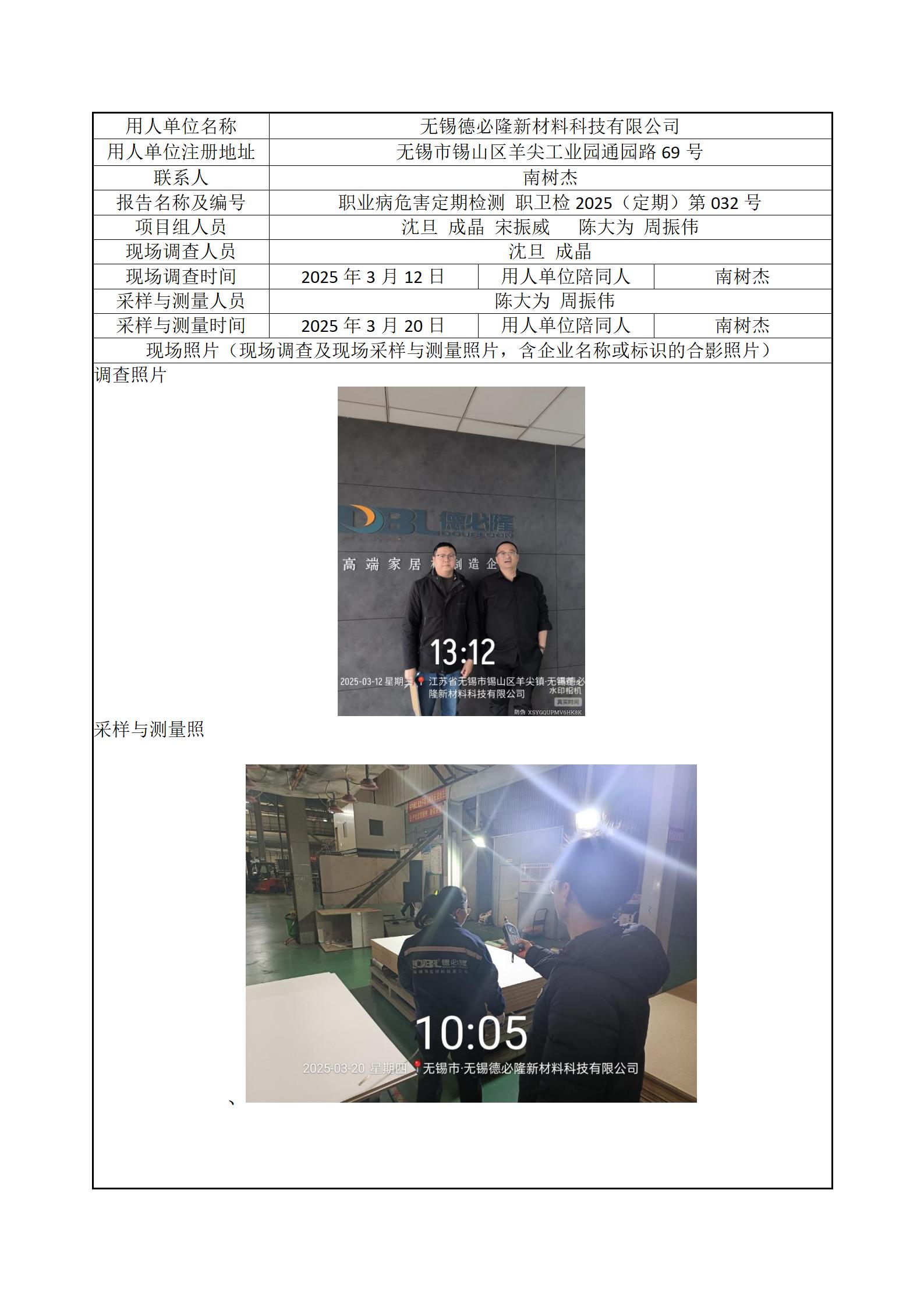 现场采样每日上报(无锡德必隆新材料科技有限公司)