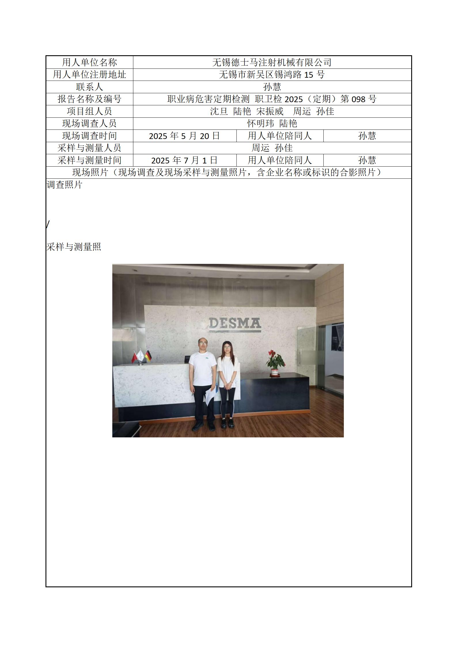 现场采样每日上报(无锡德士马注射机械有限公司)