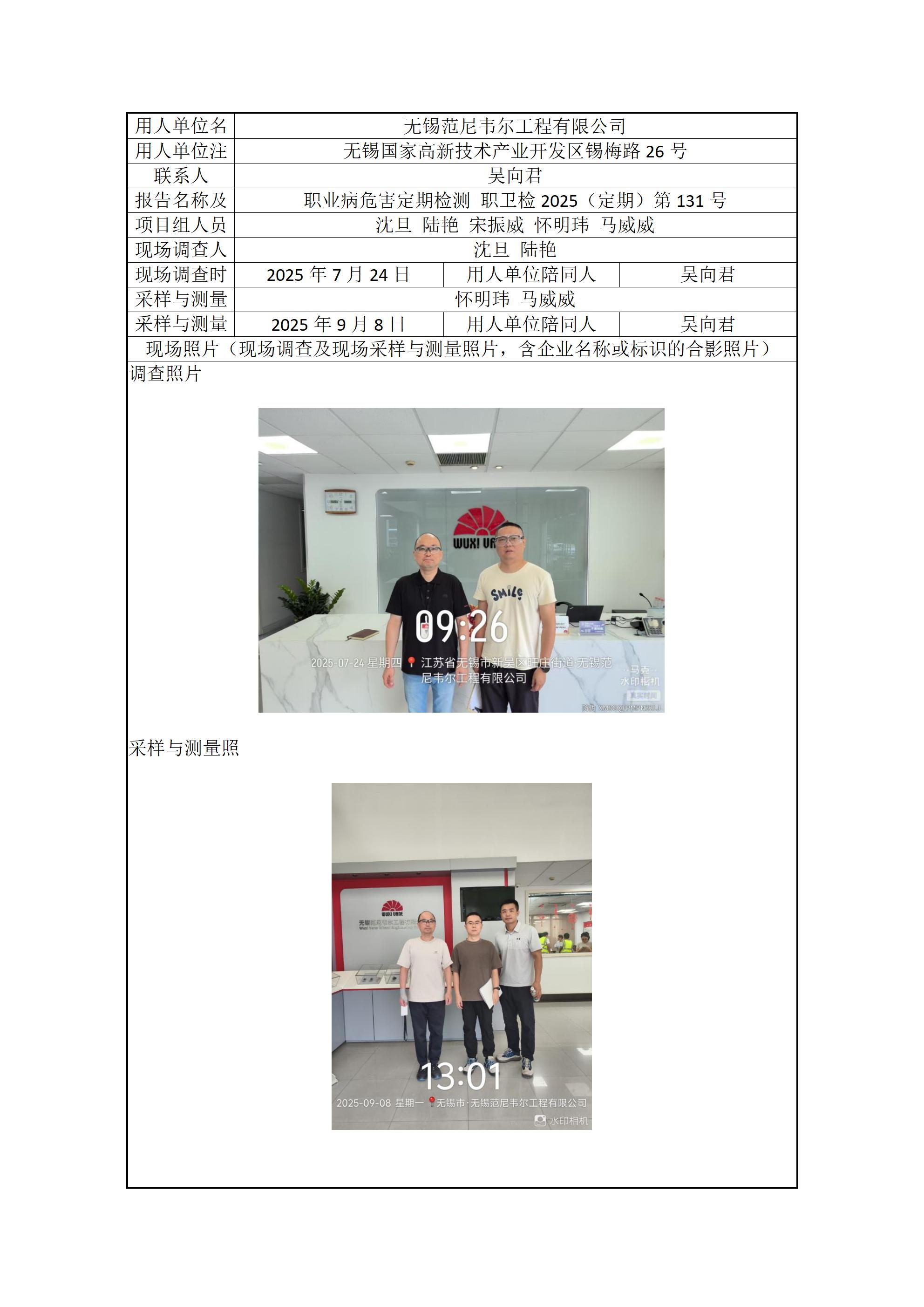 现场采样每日上报(无锡范尼韦尔工程有限公司)