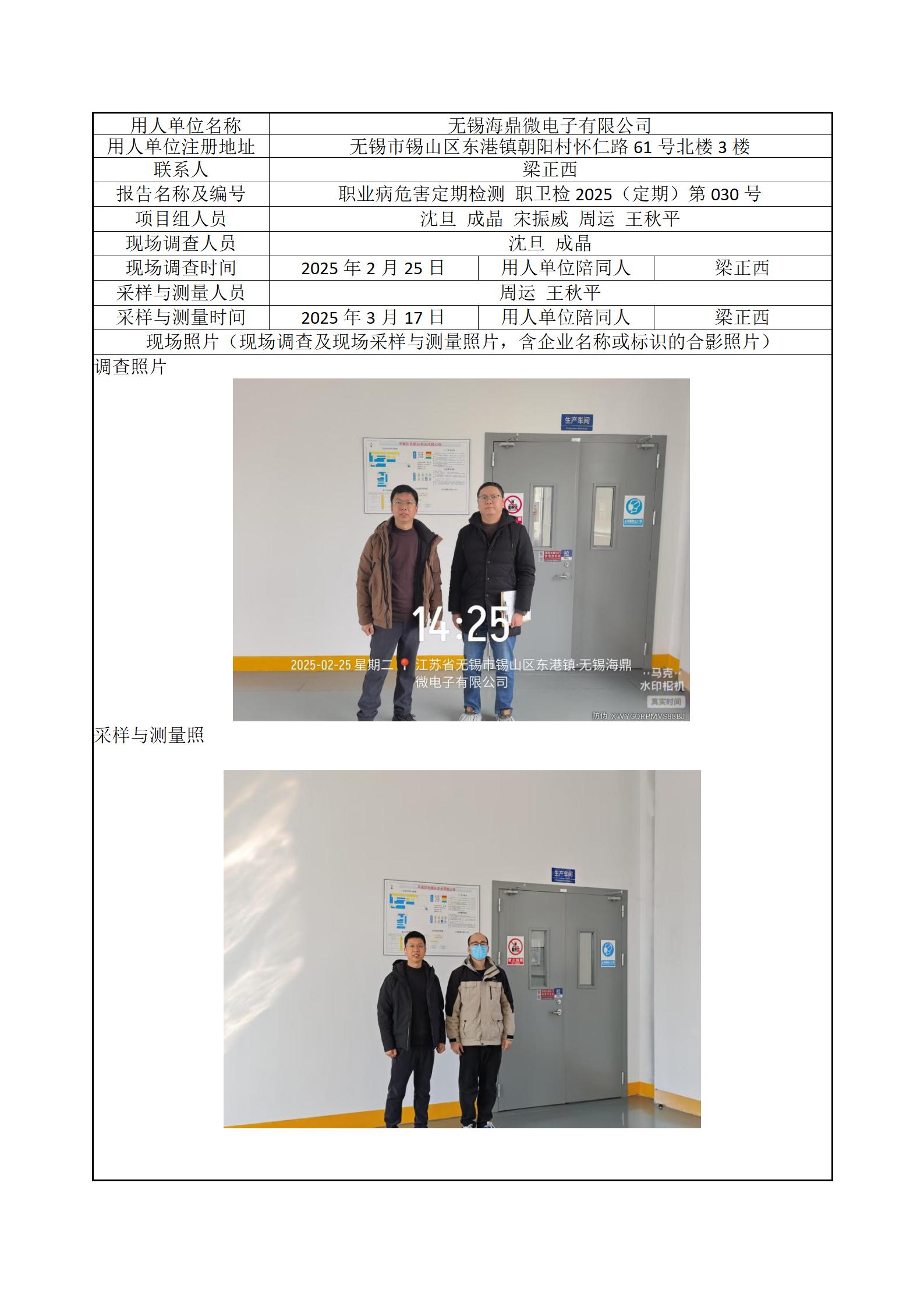 现场采样每日上报(无锡海鼎微电子有限公司)