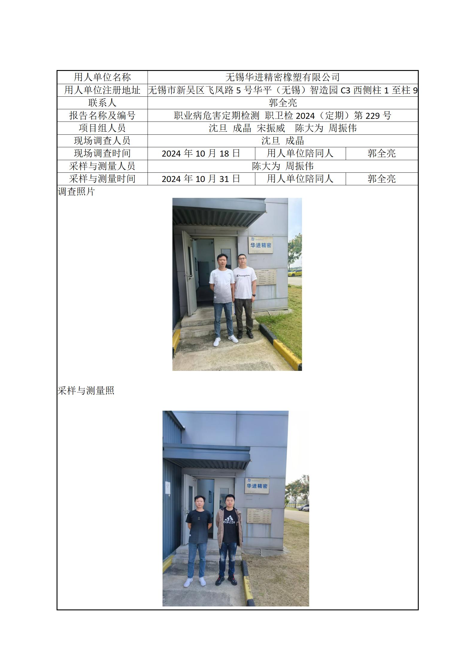 现场采样每日上报(无锡华进精密橡塑有限公司)