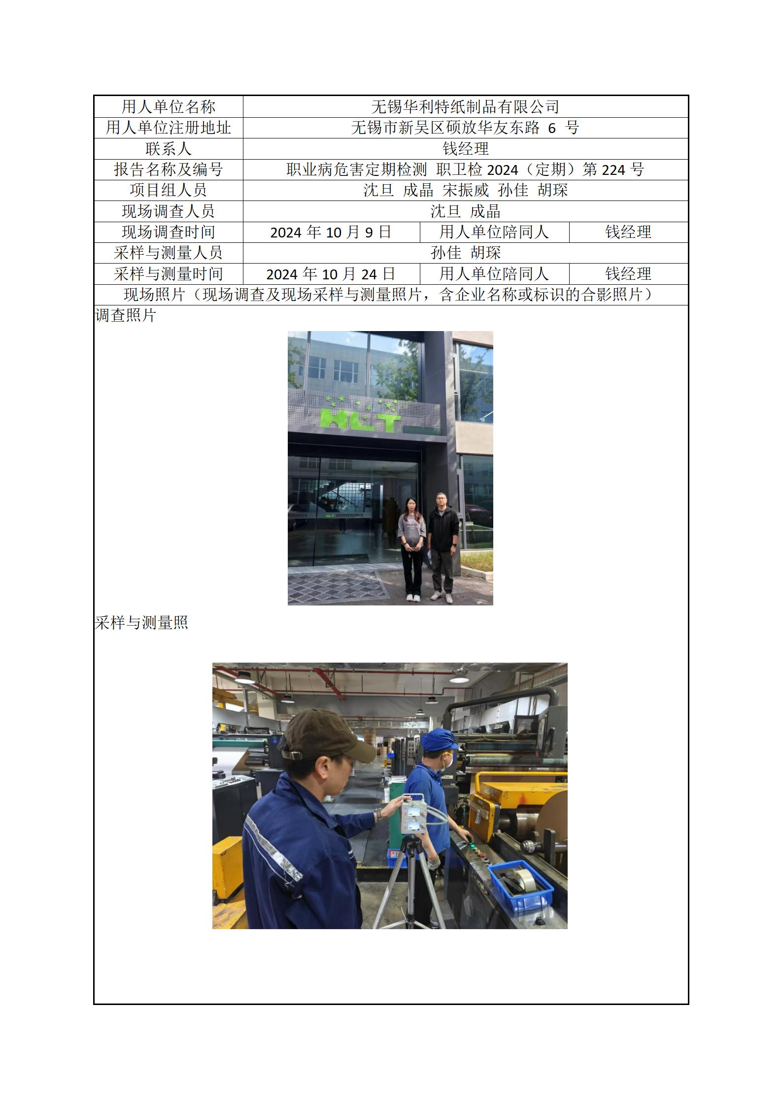 现场采样每日上报(无锡华利特纸制品有限公司)