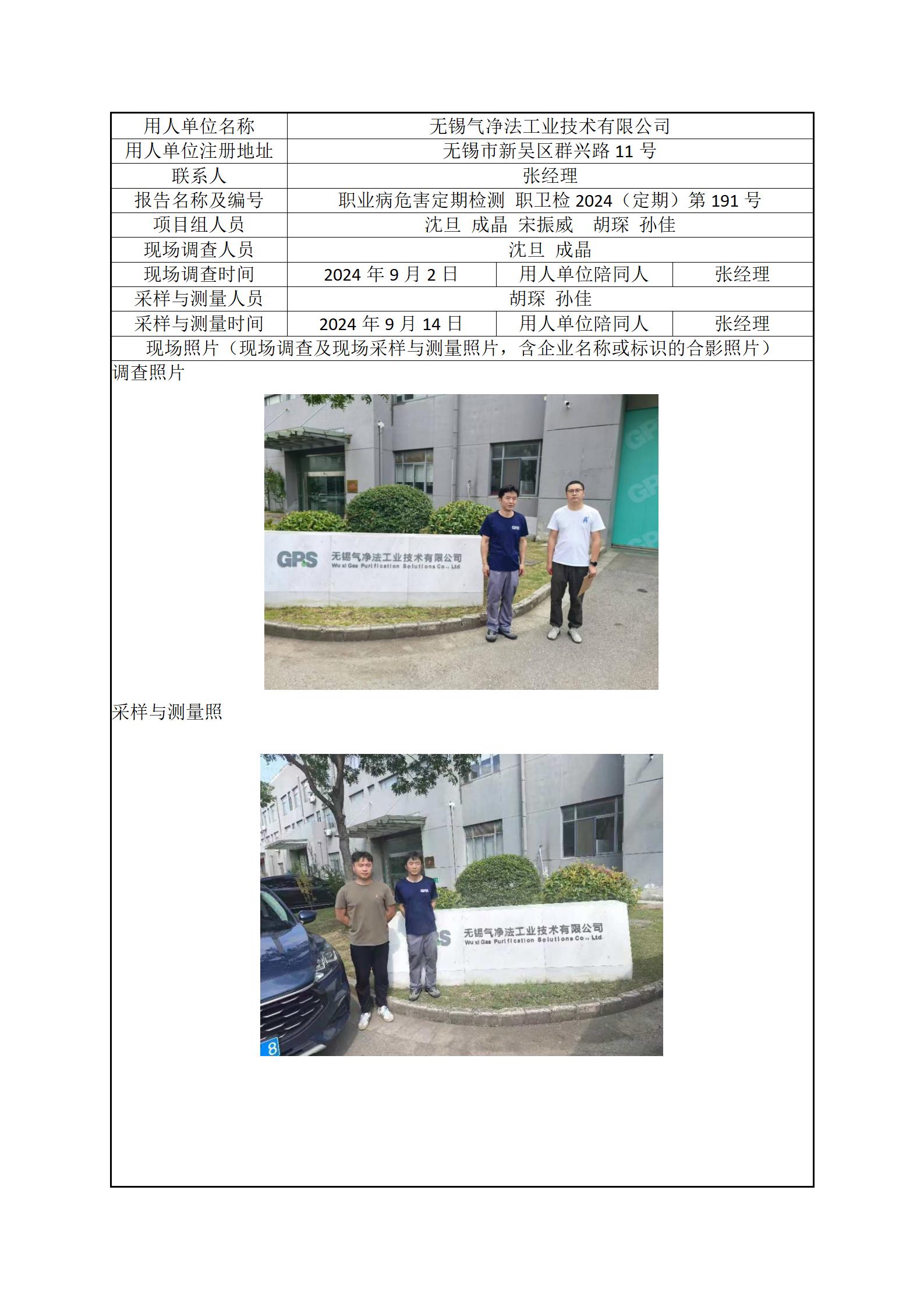 现场采样每日上报(无锡气净法工业技术有限公司)