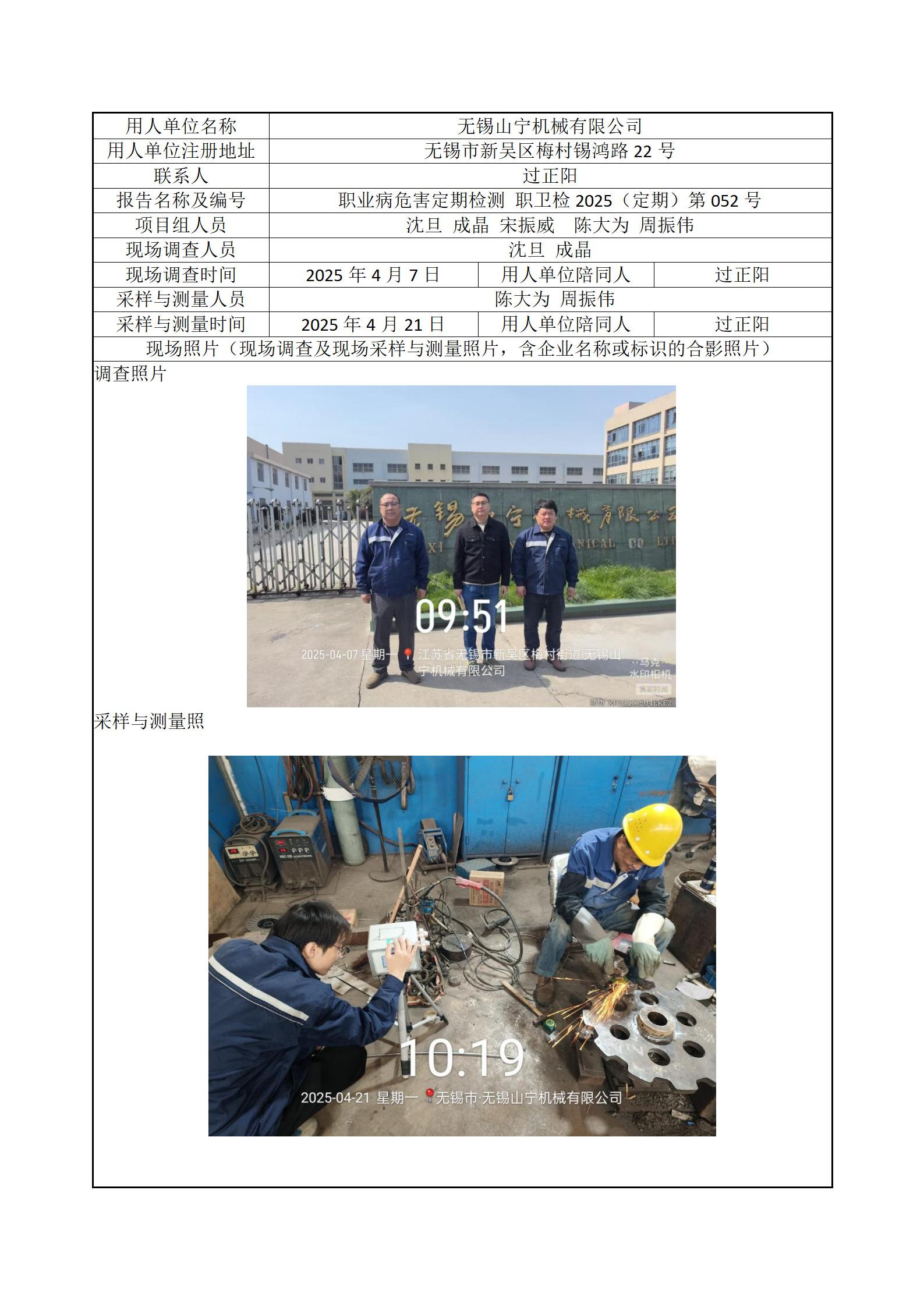 现场采样每日上报(无锡山宁机械有限公司)