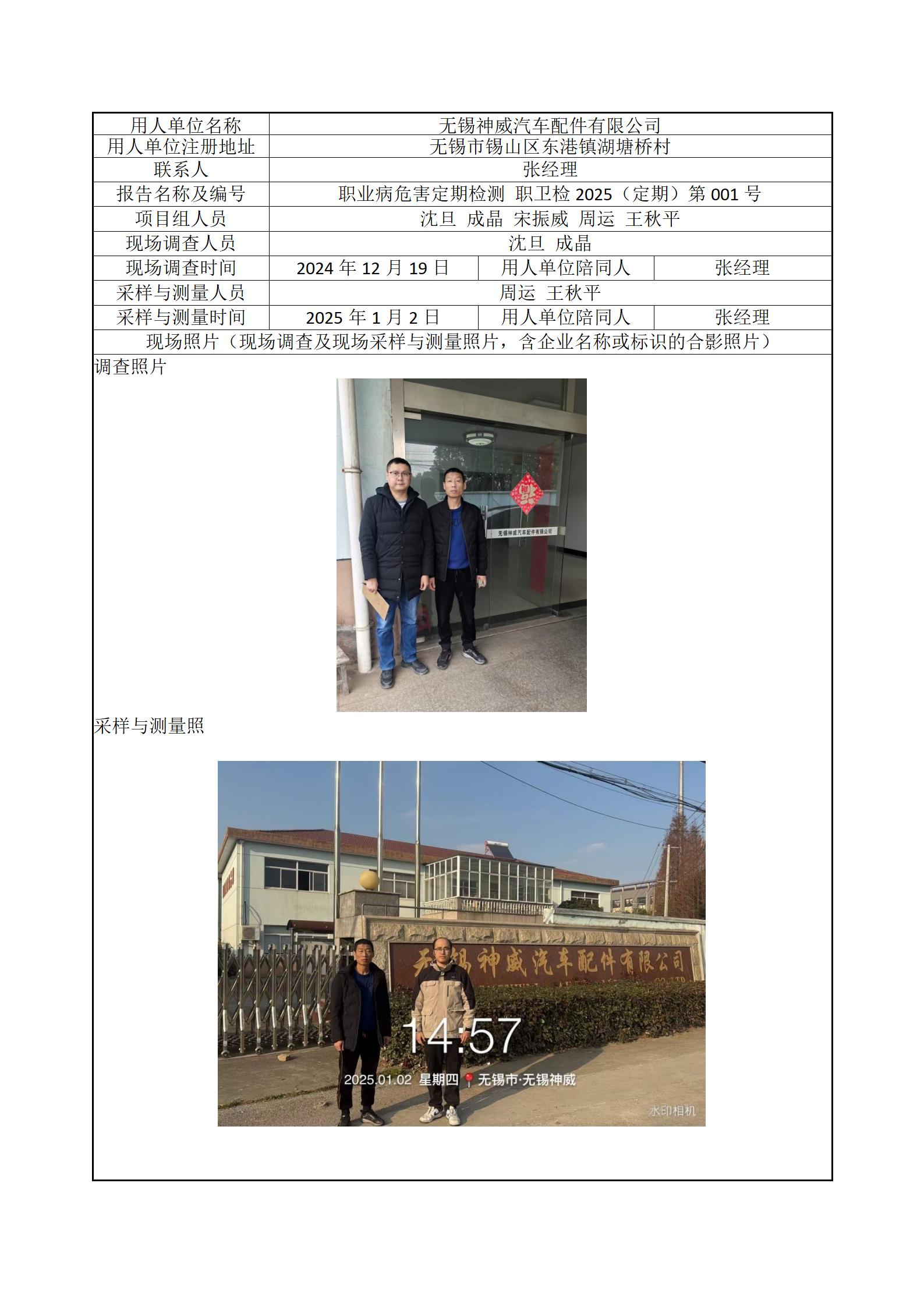 现场采样每日上报(无锡神威汽车配件有限公司)
