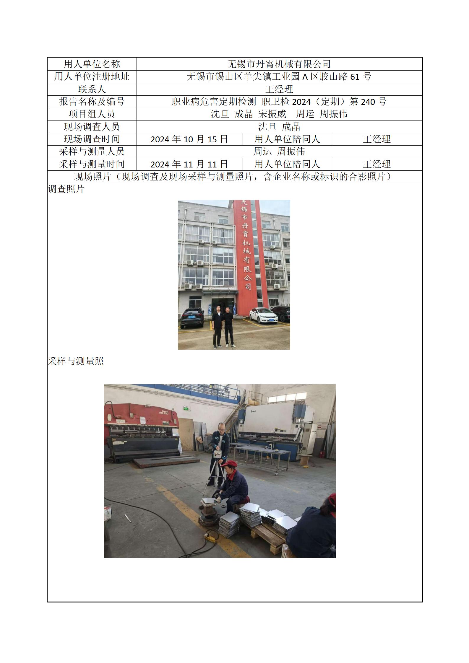 现场采样每日上报(无锡市丹霄机械有限公司)