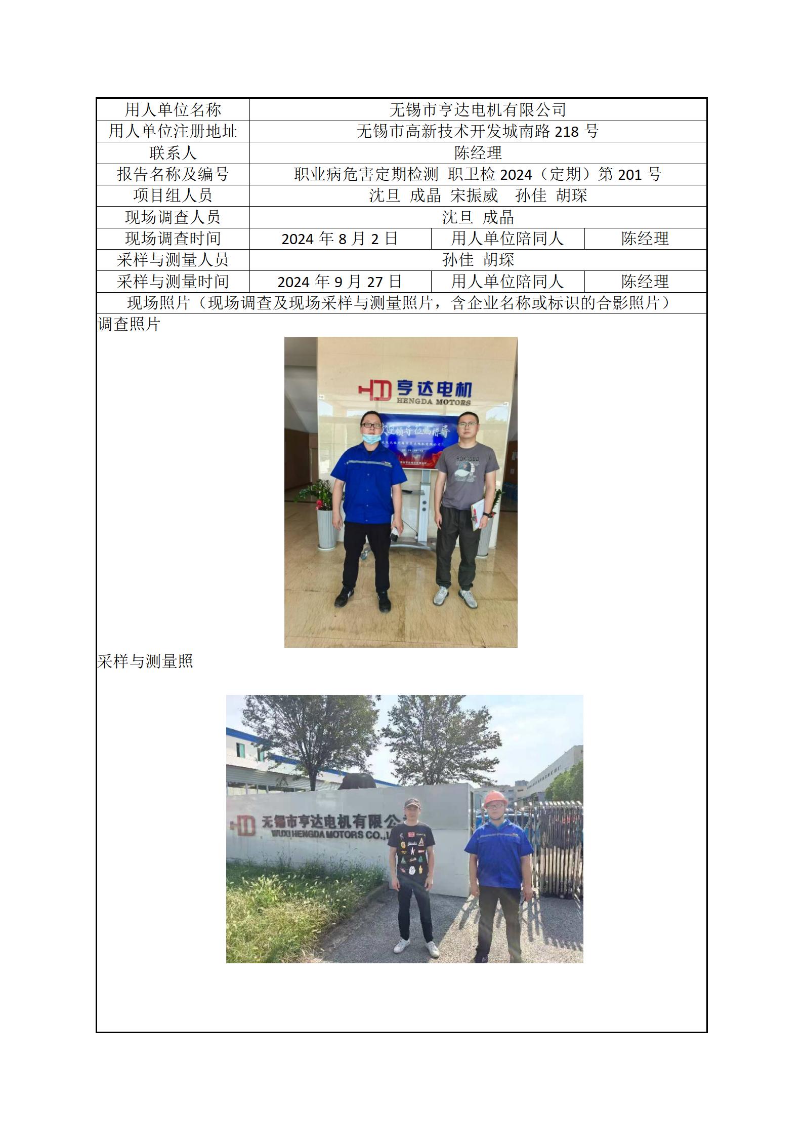 现场采样每日上报(无锡市亨达电机有限公司)