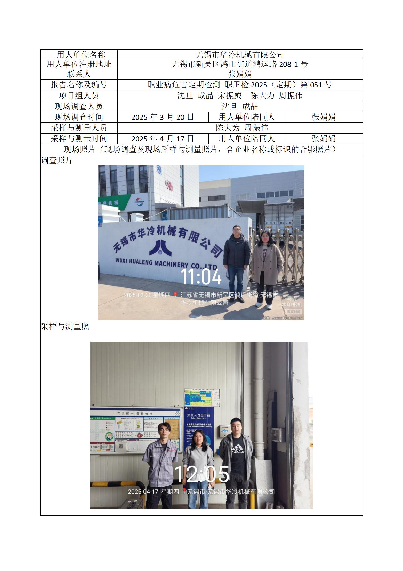 现场采样每日上报(无锡市华冷机械有限公司)