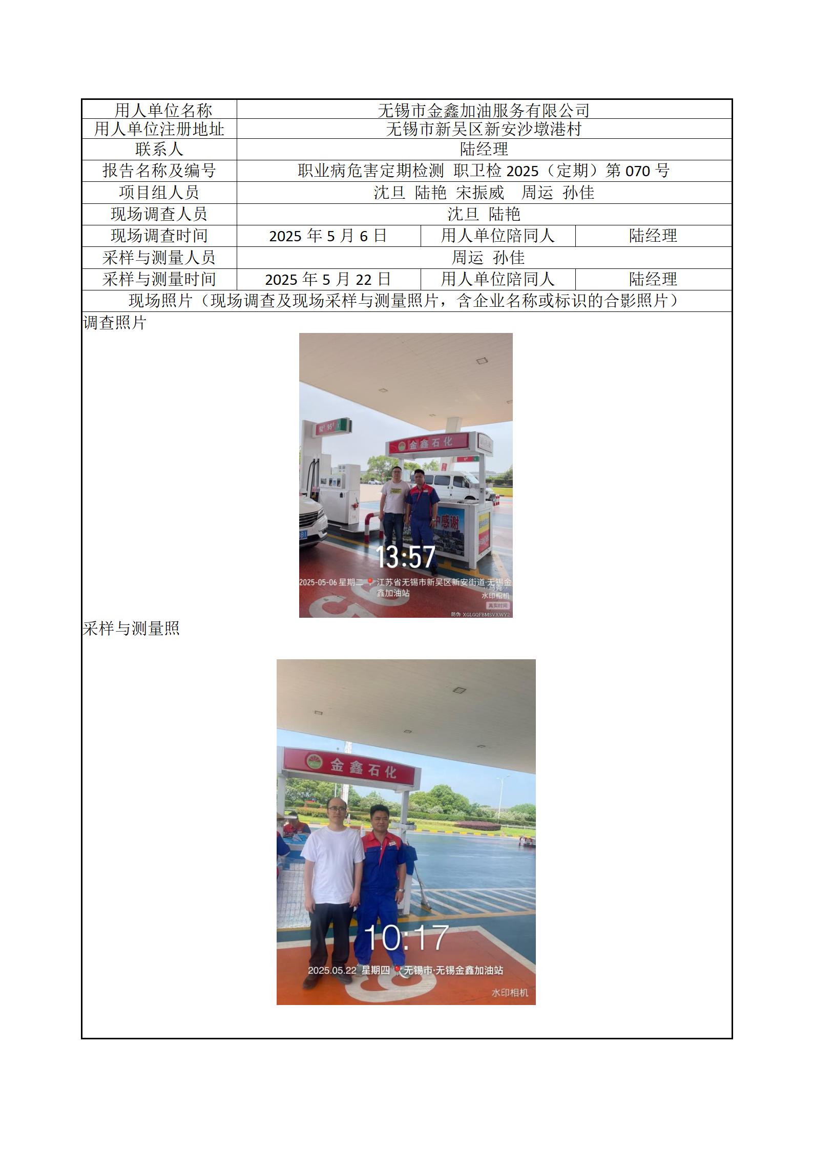 现场采样每日上报(无锡市金鑫加油服务有限公司)