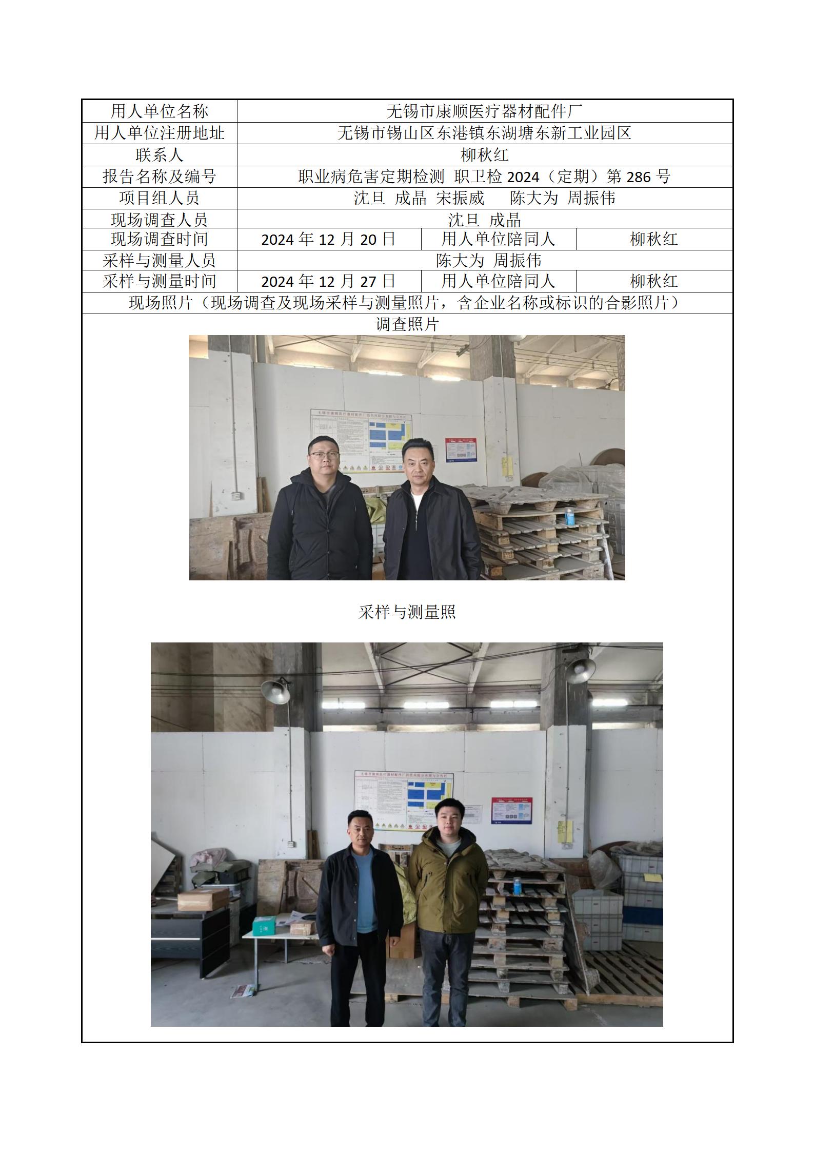 现场采样每日上报(无锡市康顺医疗器材配件厂)