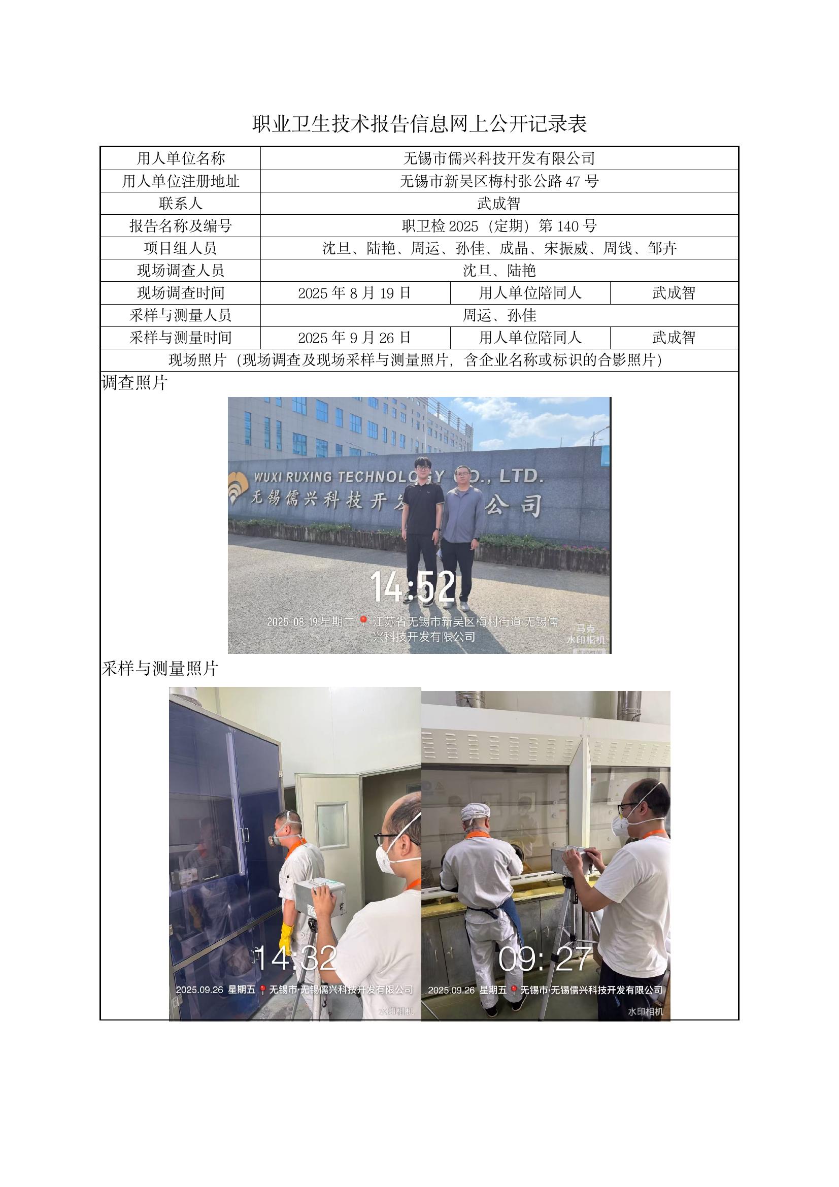【职业卫生报告】无锡市儒兴科技开发有限公司