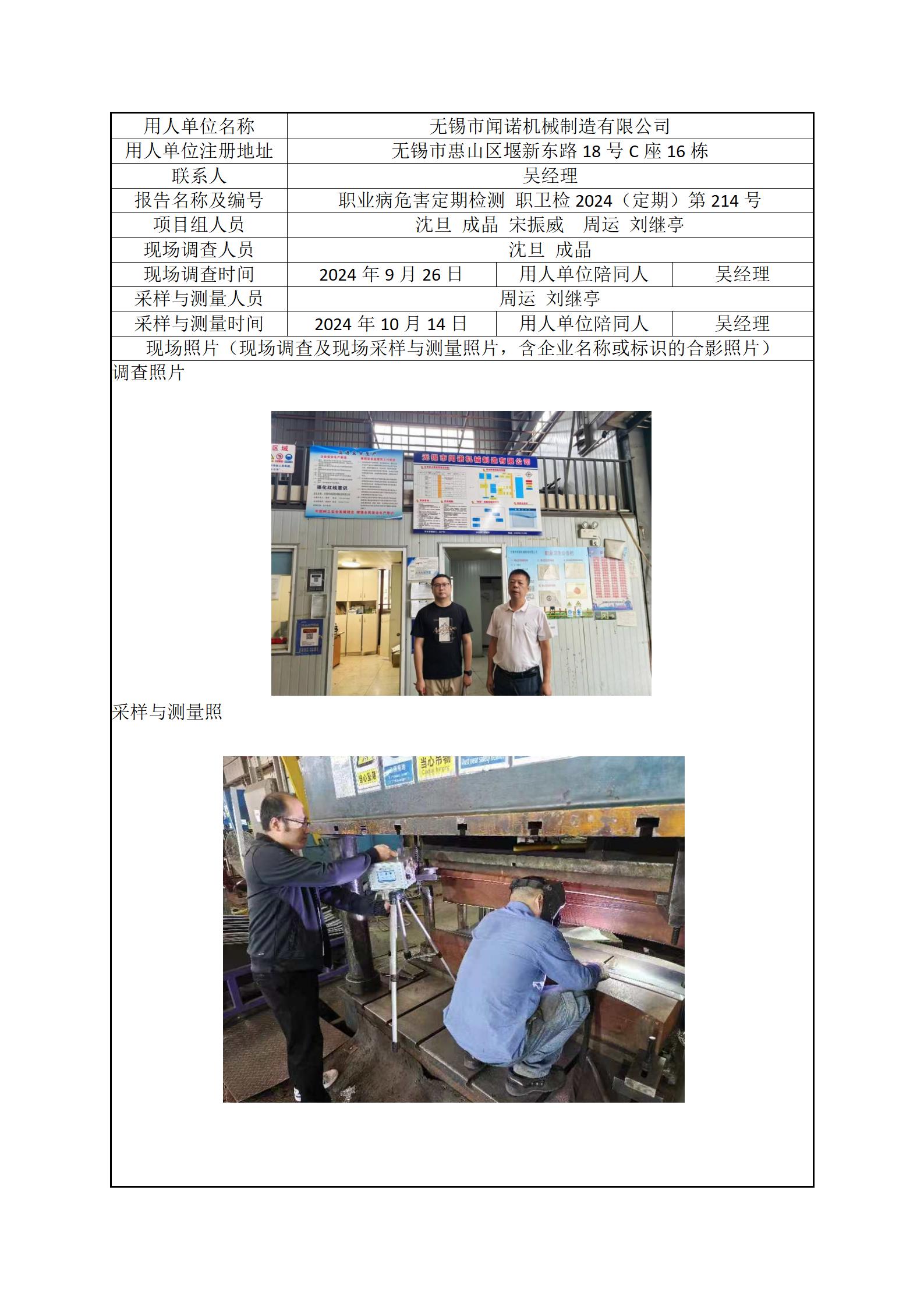 现场采样每日上报(无锡市闻诺机械制作有限公司)