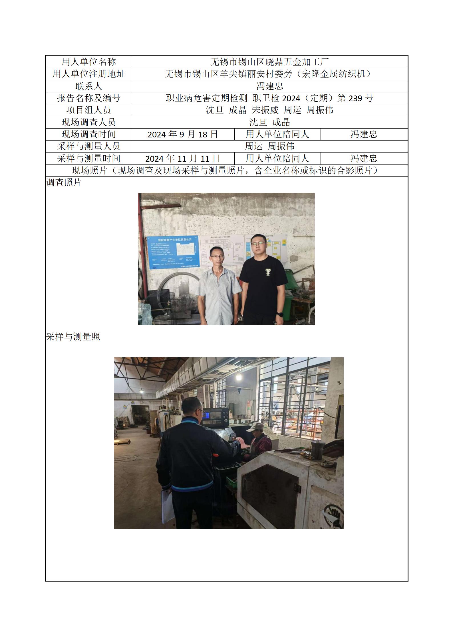 现场采样每日上报(无锡市锡山区晓鼎五金加工厂)