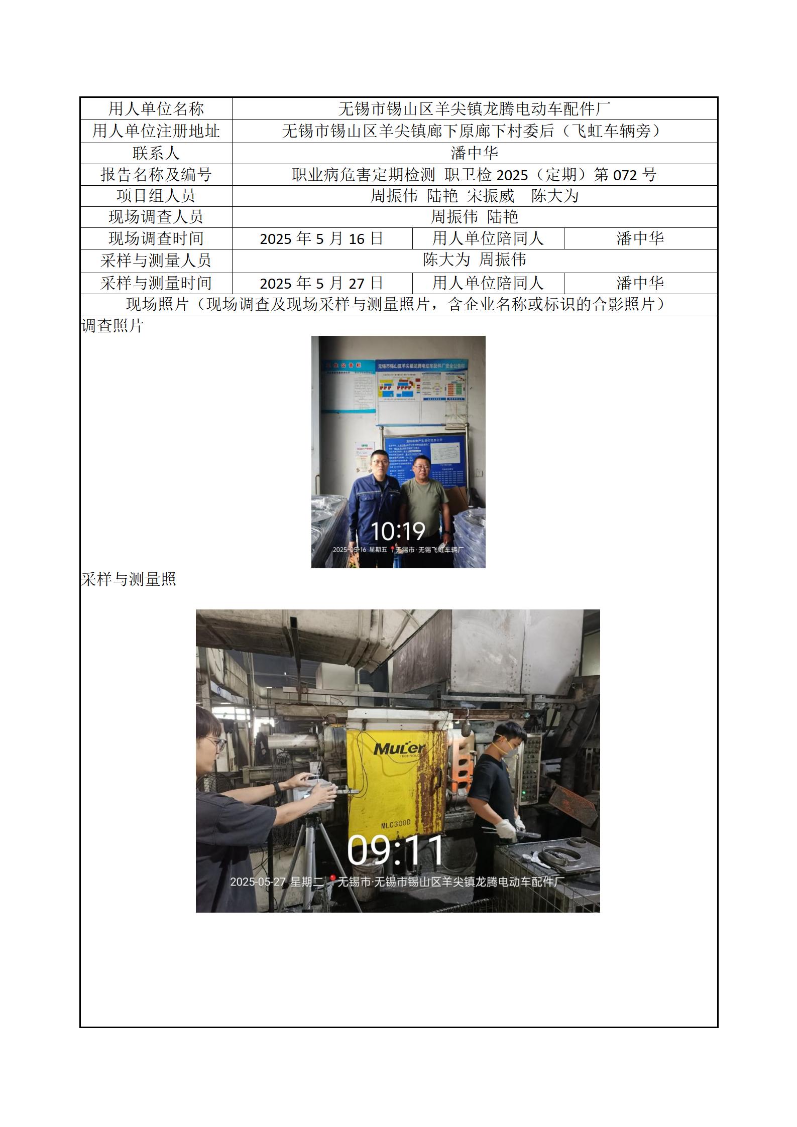 现场采样每日上报(无锡市锡山区羊尖镇龙腾电动车配件厂)