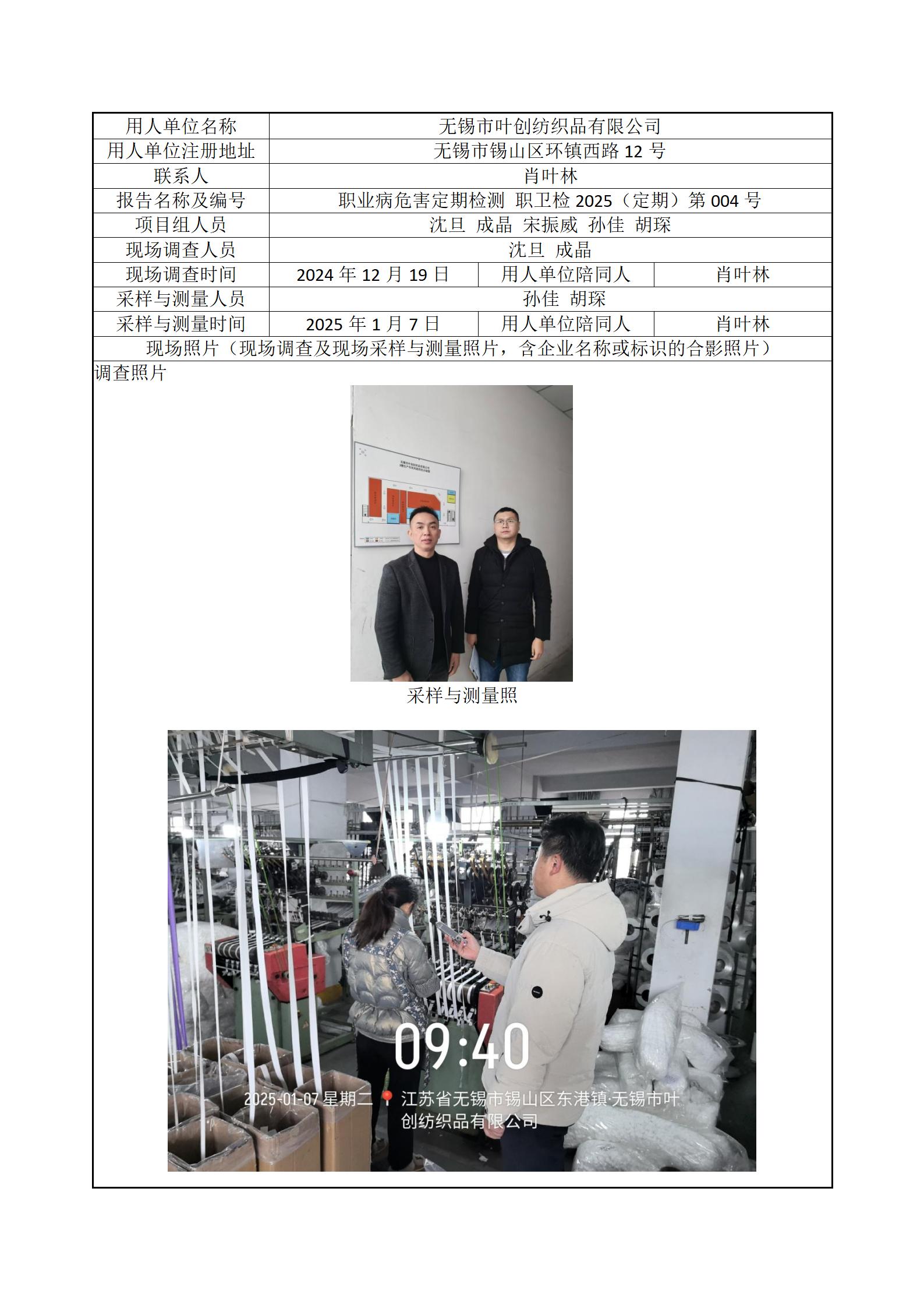 现场采样每日上报(无锡市叶创纺织品有限公司)