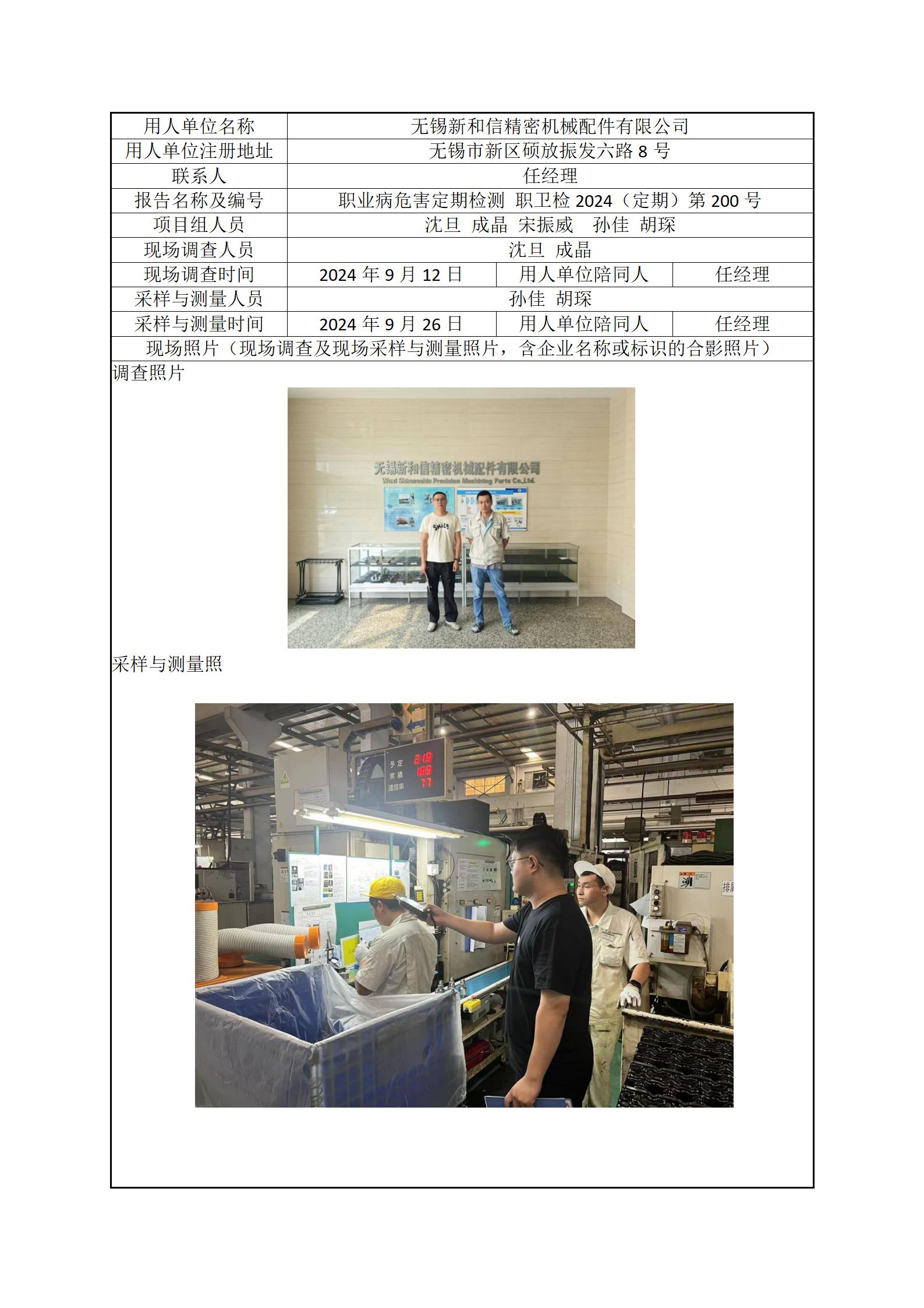 现场采样每日上报(无锡新和信精密机械配件有限公司)