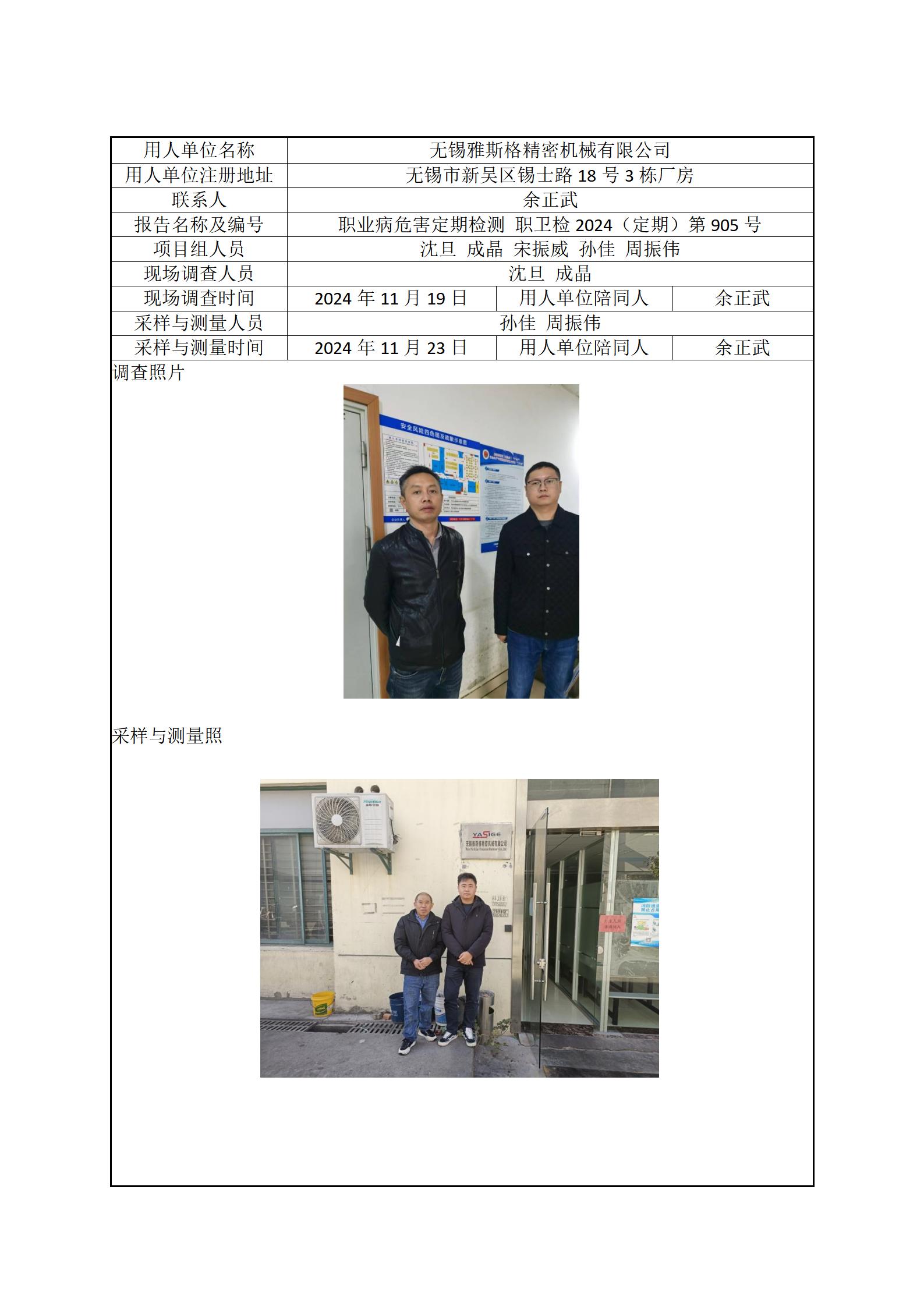 现场采样每日上报(无锡雅思格精密机械有限公司)