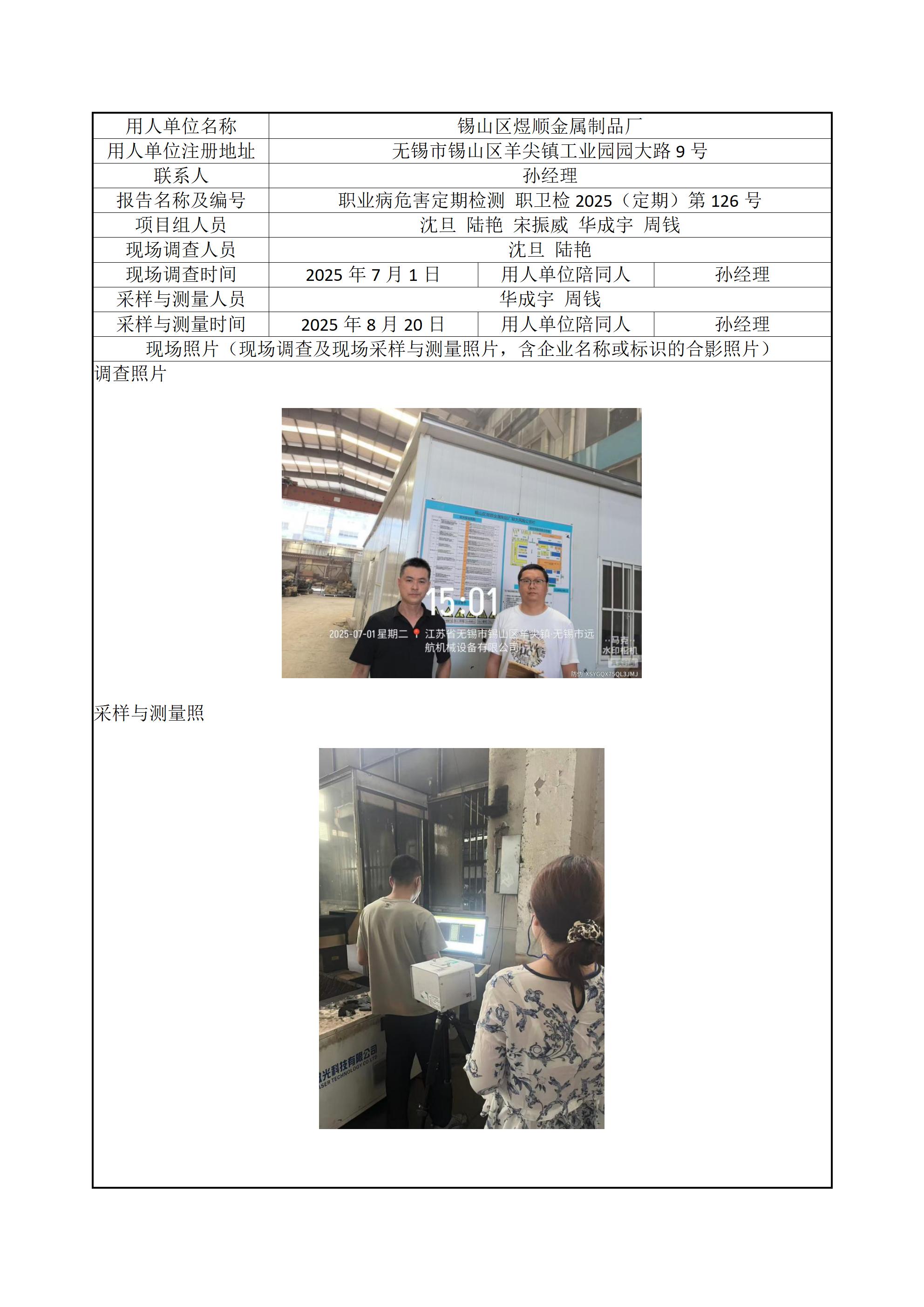 现场采样每日上报(锡山区煜顺金属制品厂)