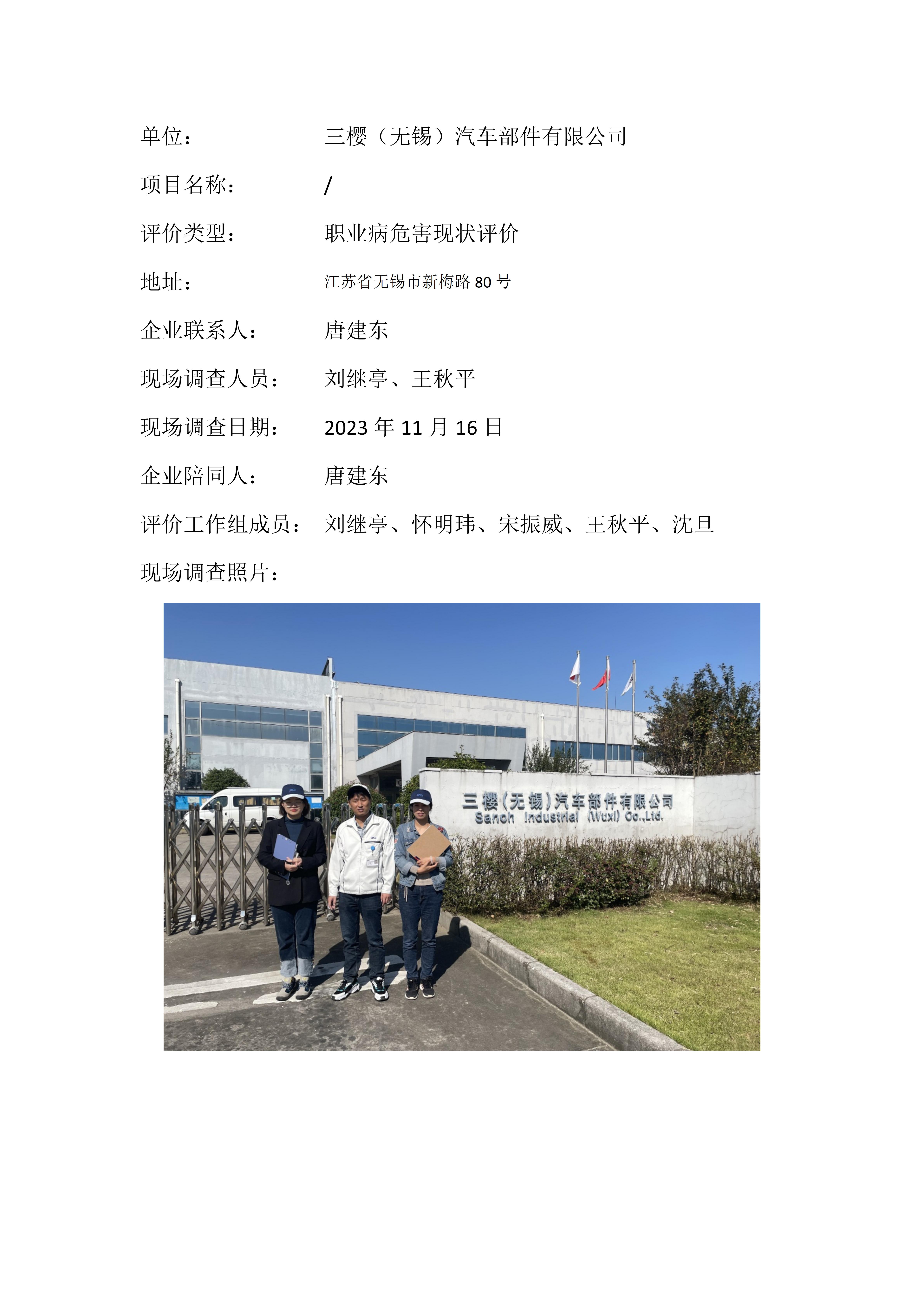 【职业病危害现状评价报告】三樱(无锡)汽车部件有限公司