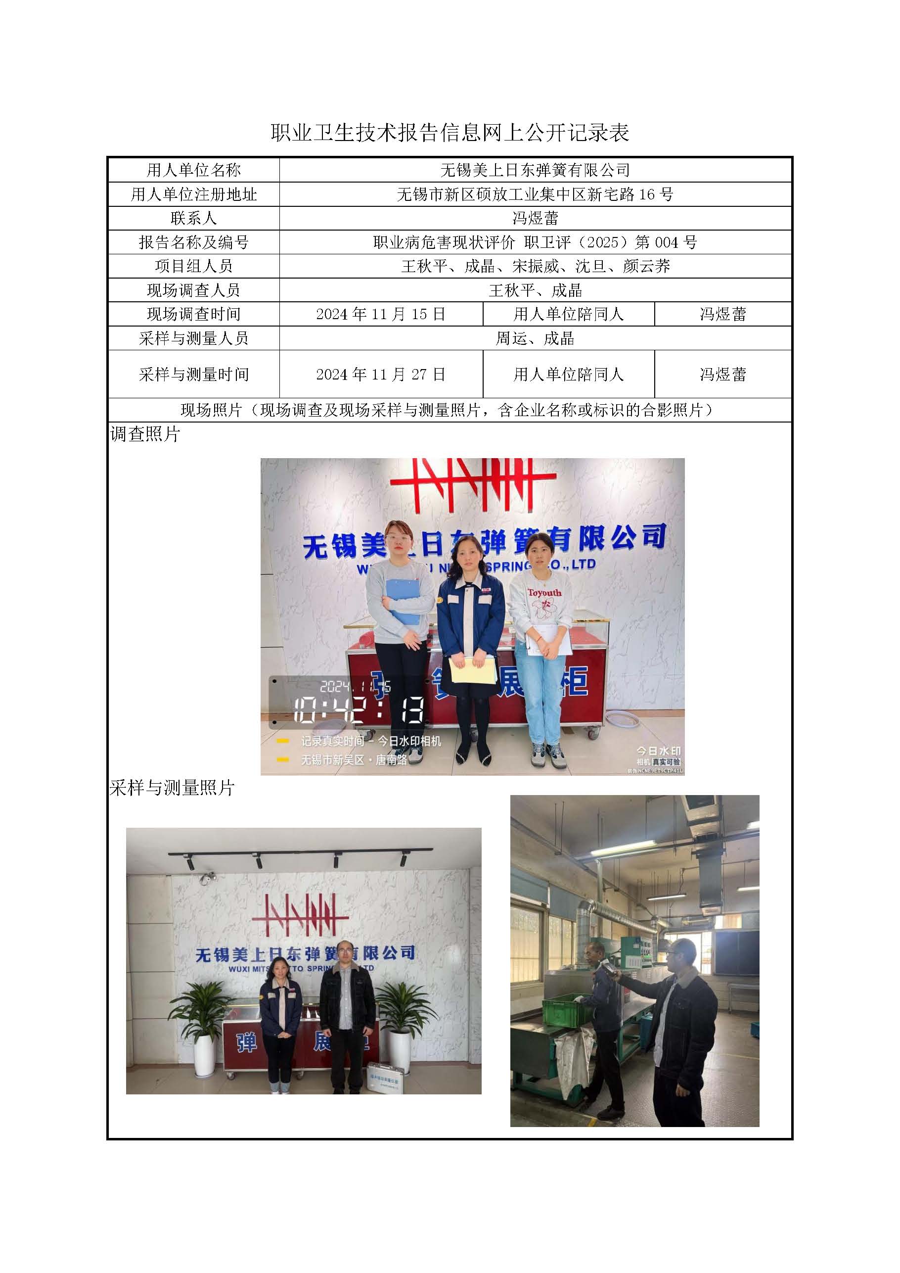 【职业病危害现状评价报告】无锡美上日东弹簧有限公司