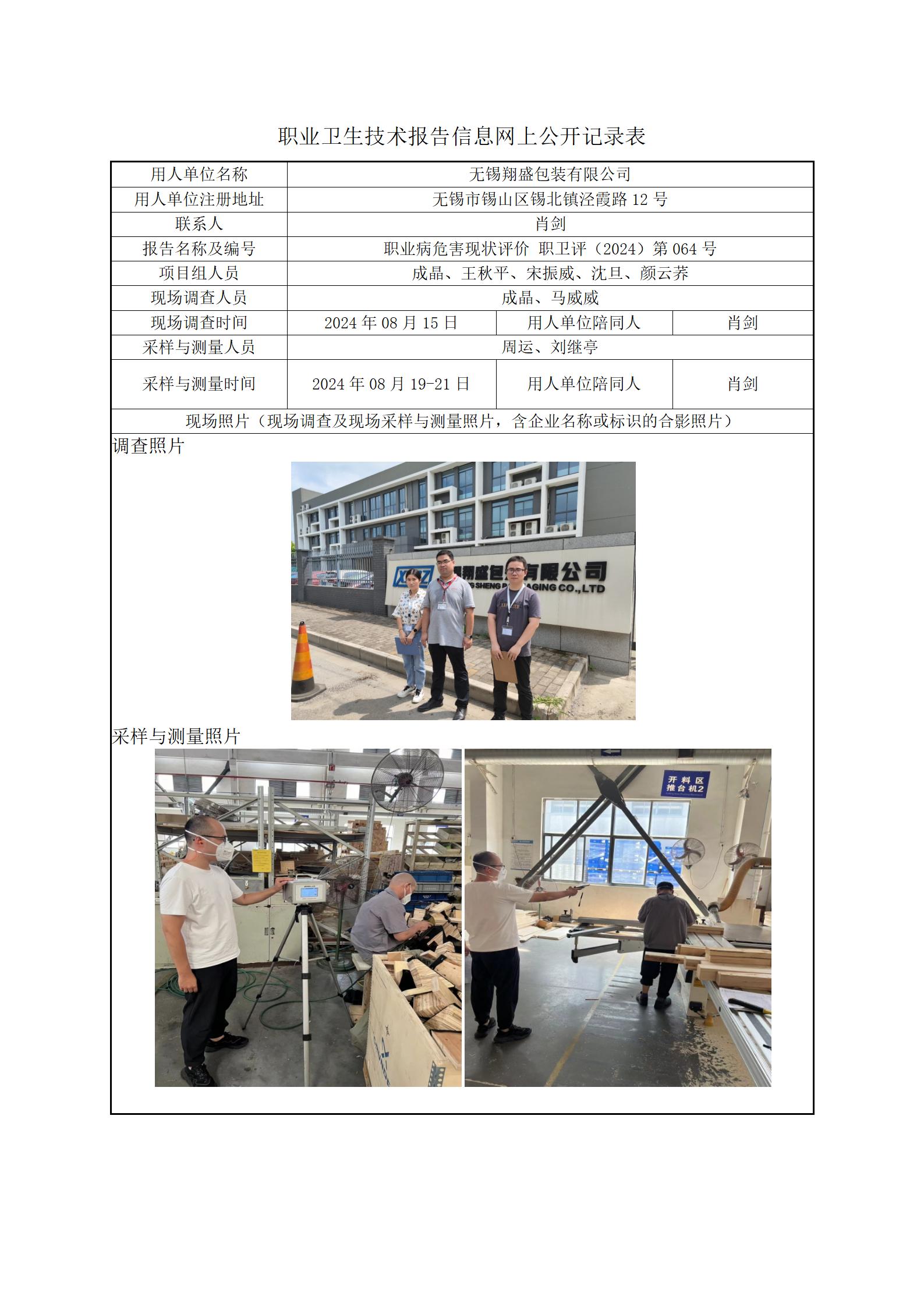 【职业病危害现状评价报告】无锡翔盛包装有限公司