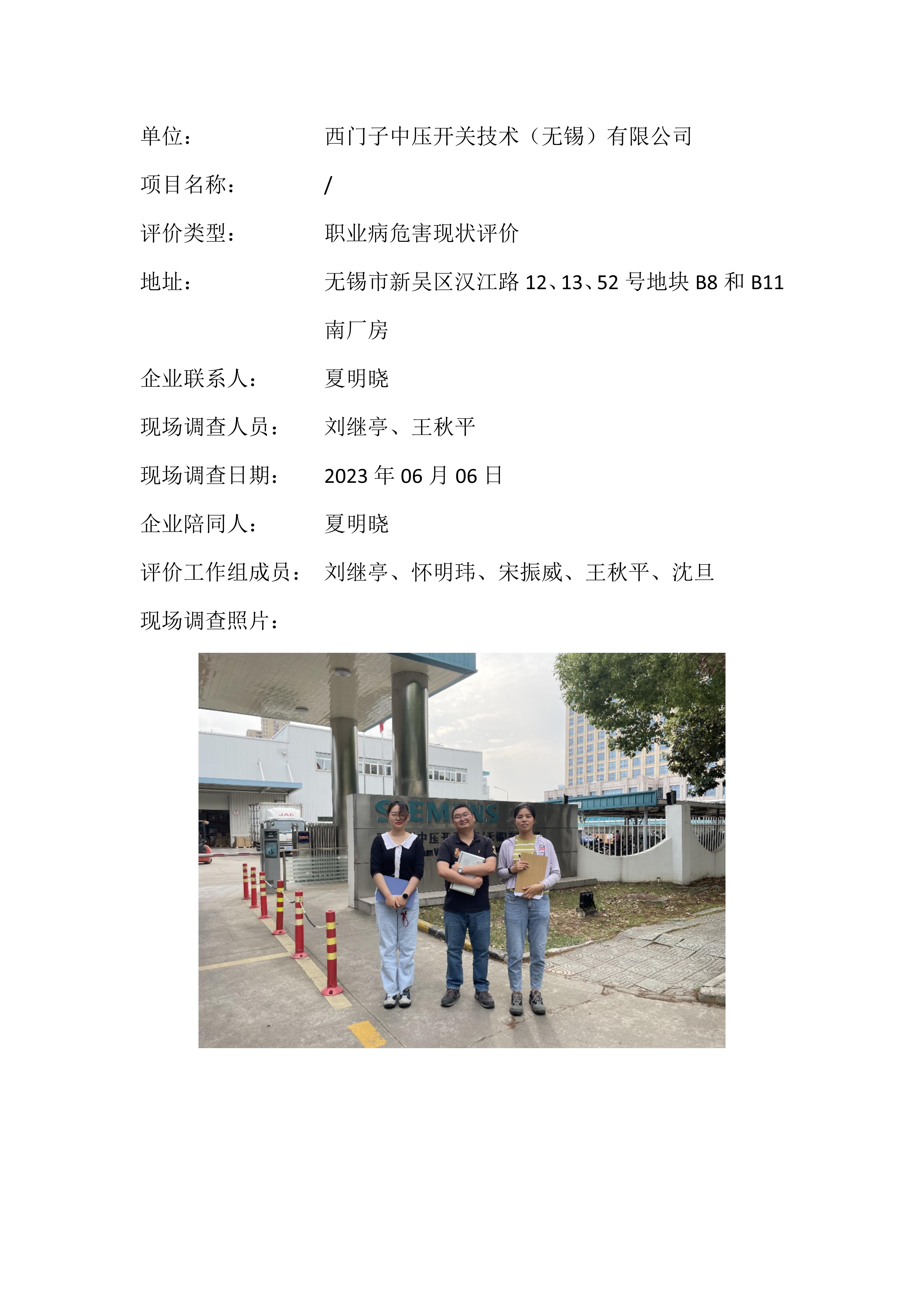 【职业病危害现状评价报告】西门子中压开关技术(无锡)有限公司