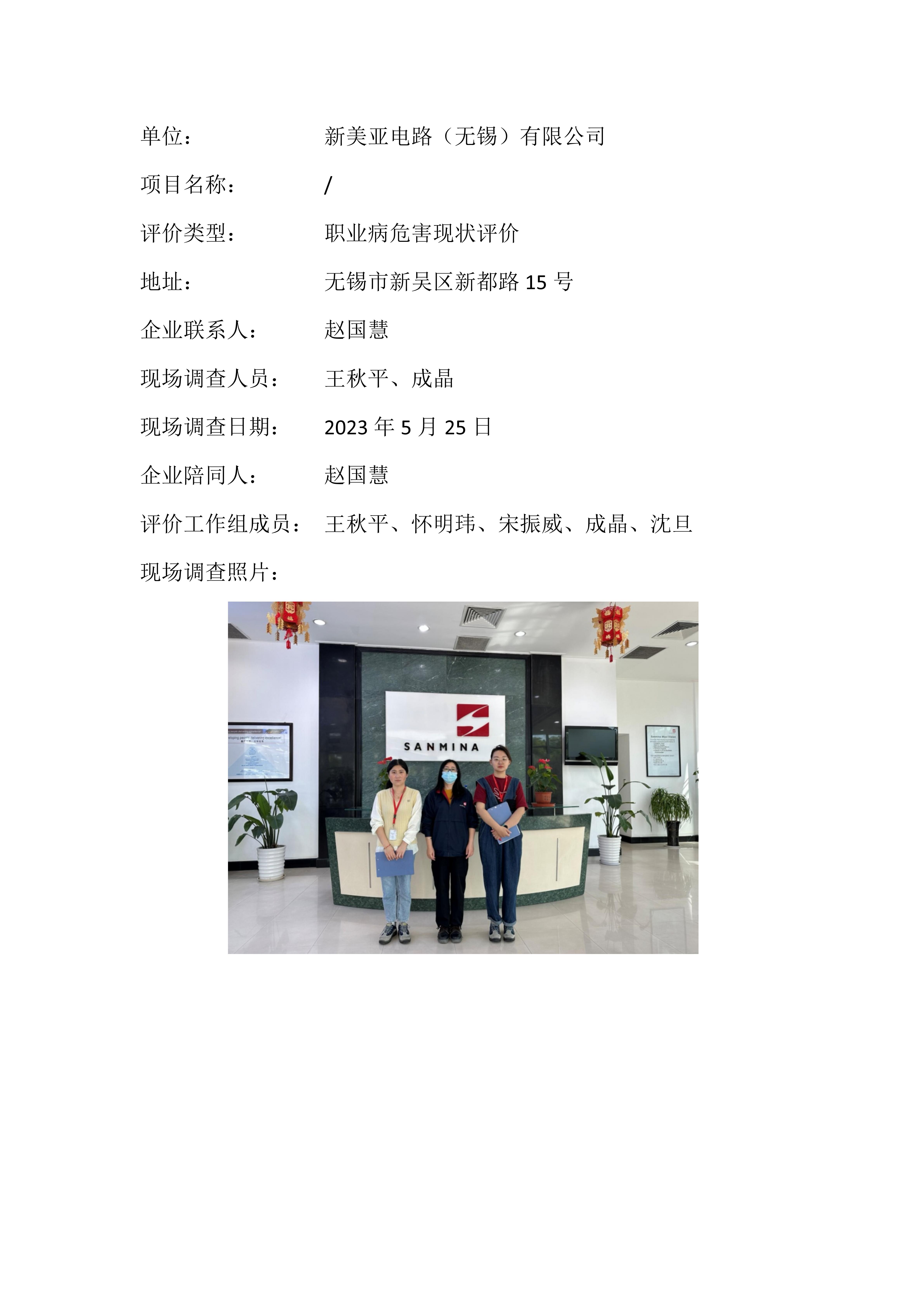 【职业病危害现状评价报告】新美亚电路(无锡)有限公司