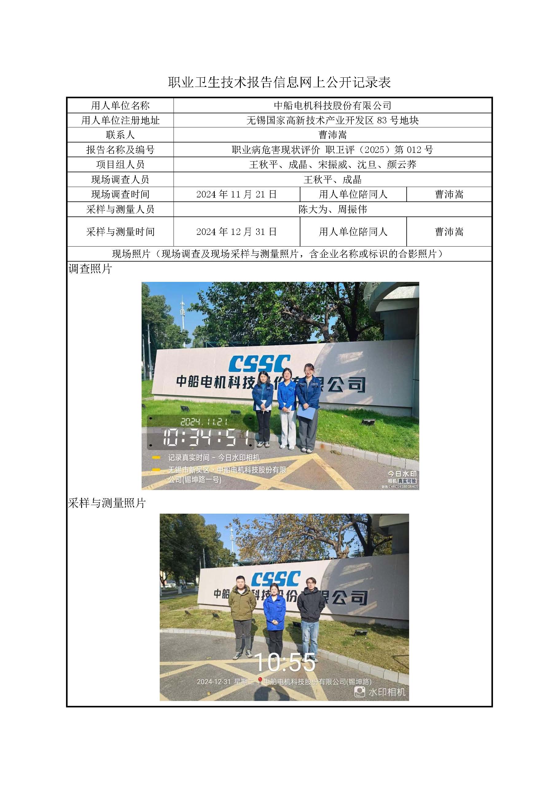 【职业病危害现状评价报告】中船电机科技股份有限公司