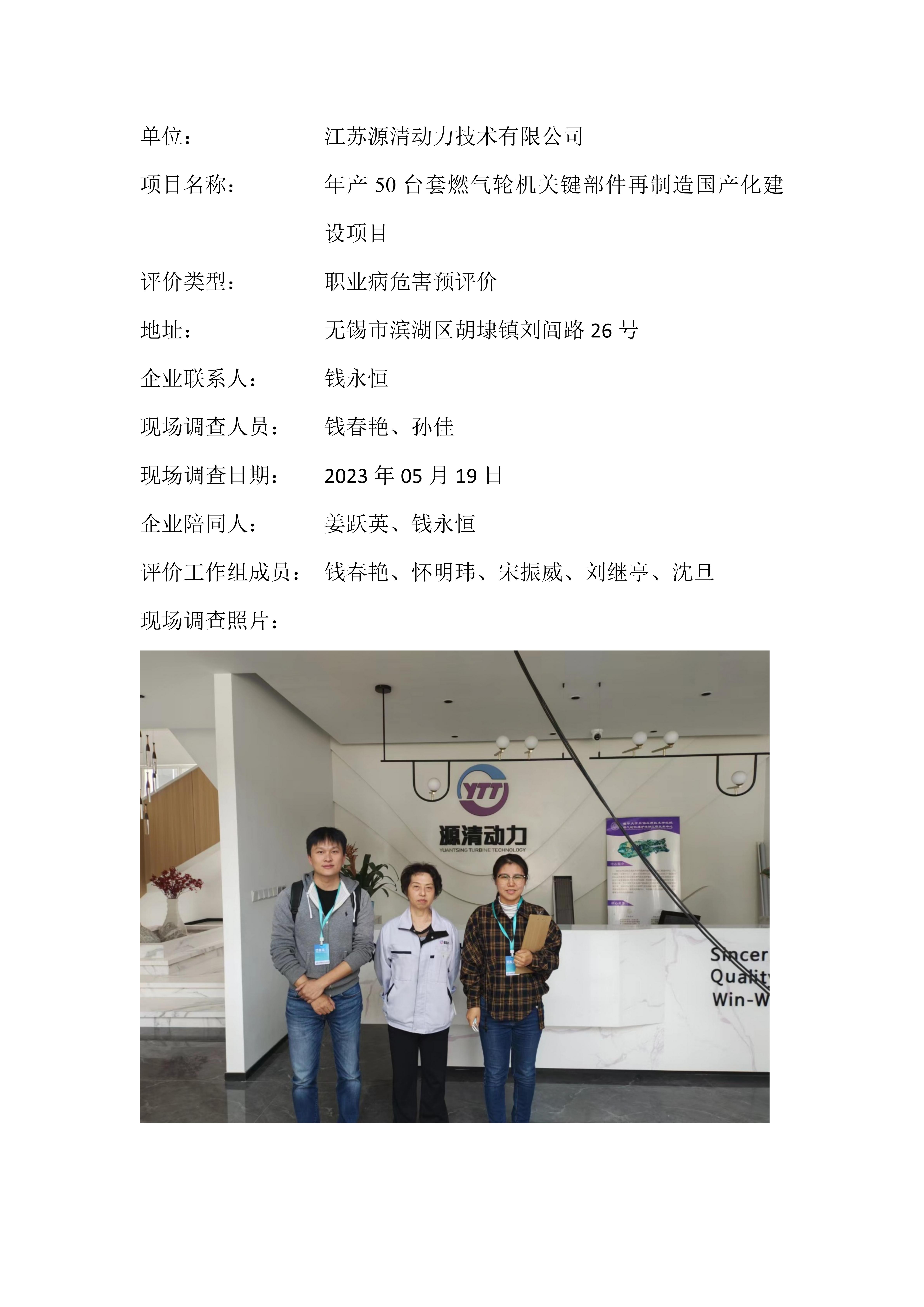 【职业病危害预评价报告】江苏源清动力技术有限公司