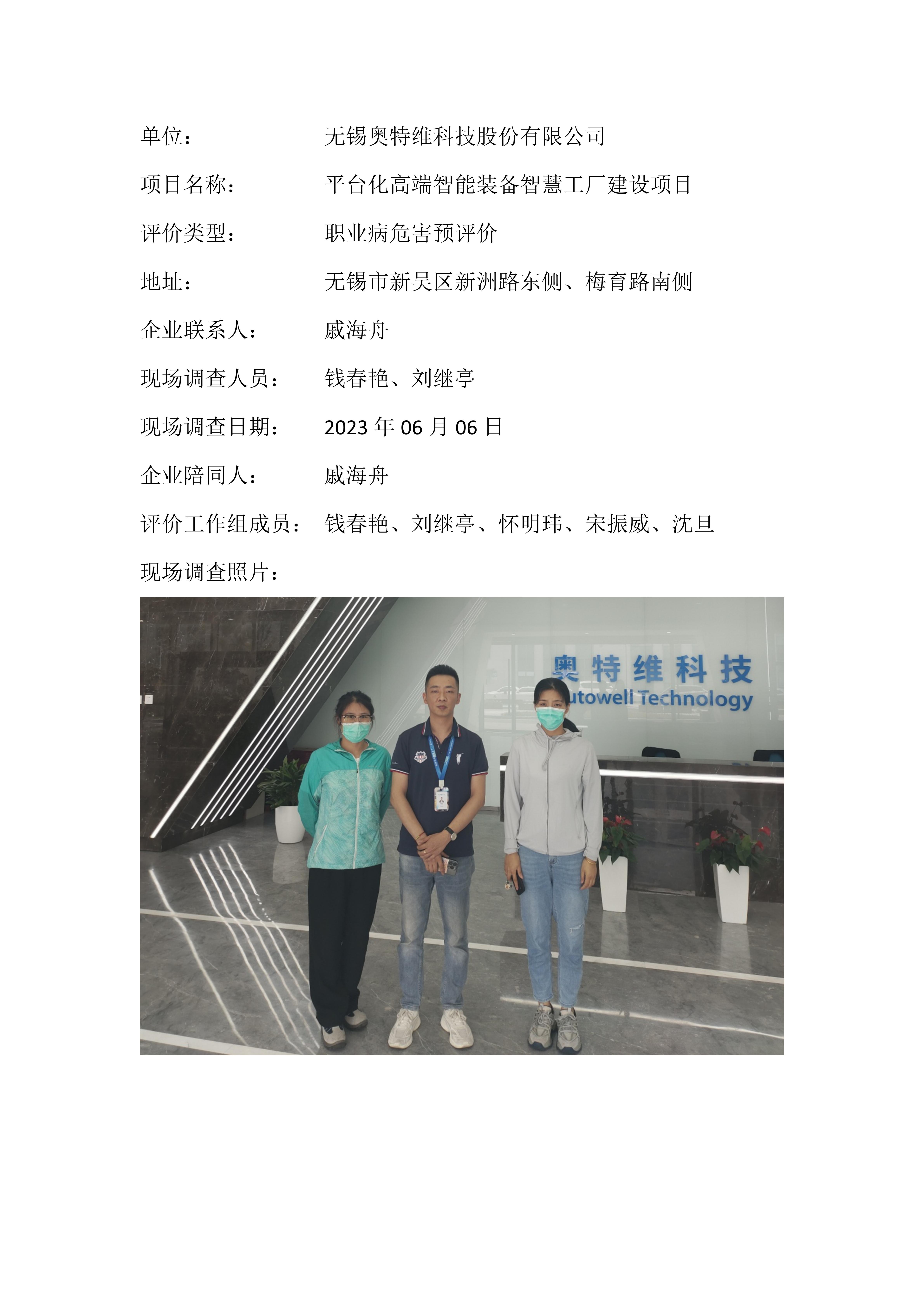 【职业病危害预评价报告】无锡奥特维科技股份有限公司 - 智慧工厂建设项目