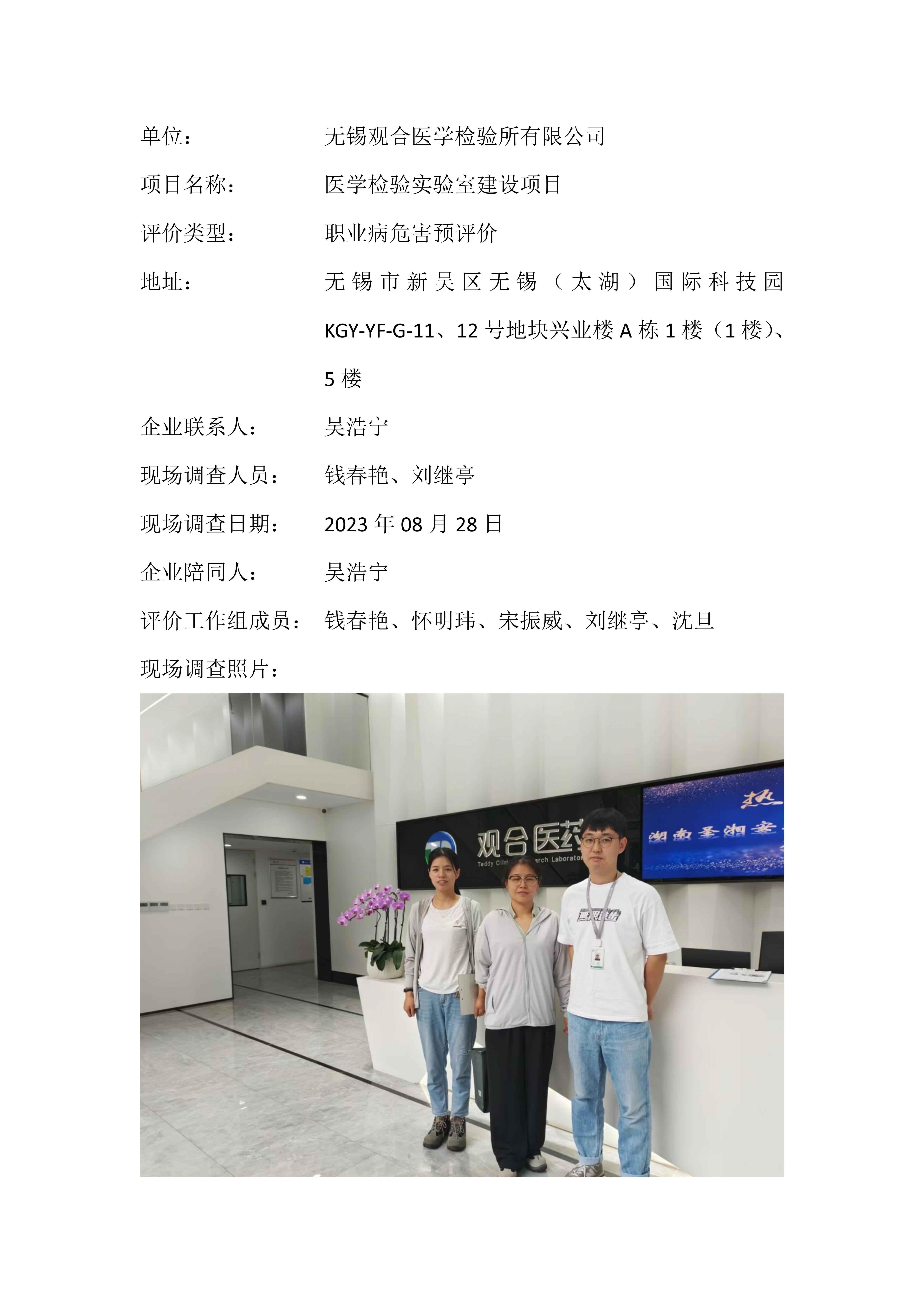 【职业病危害预评价报告】无锡观合医学检验所有限公司医学检验实验室建设项目