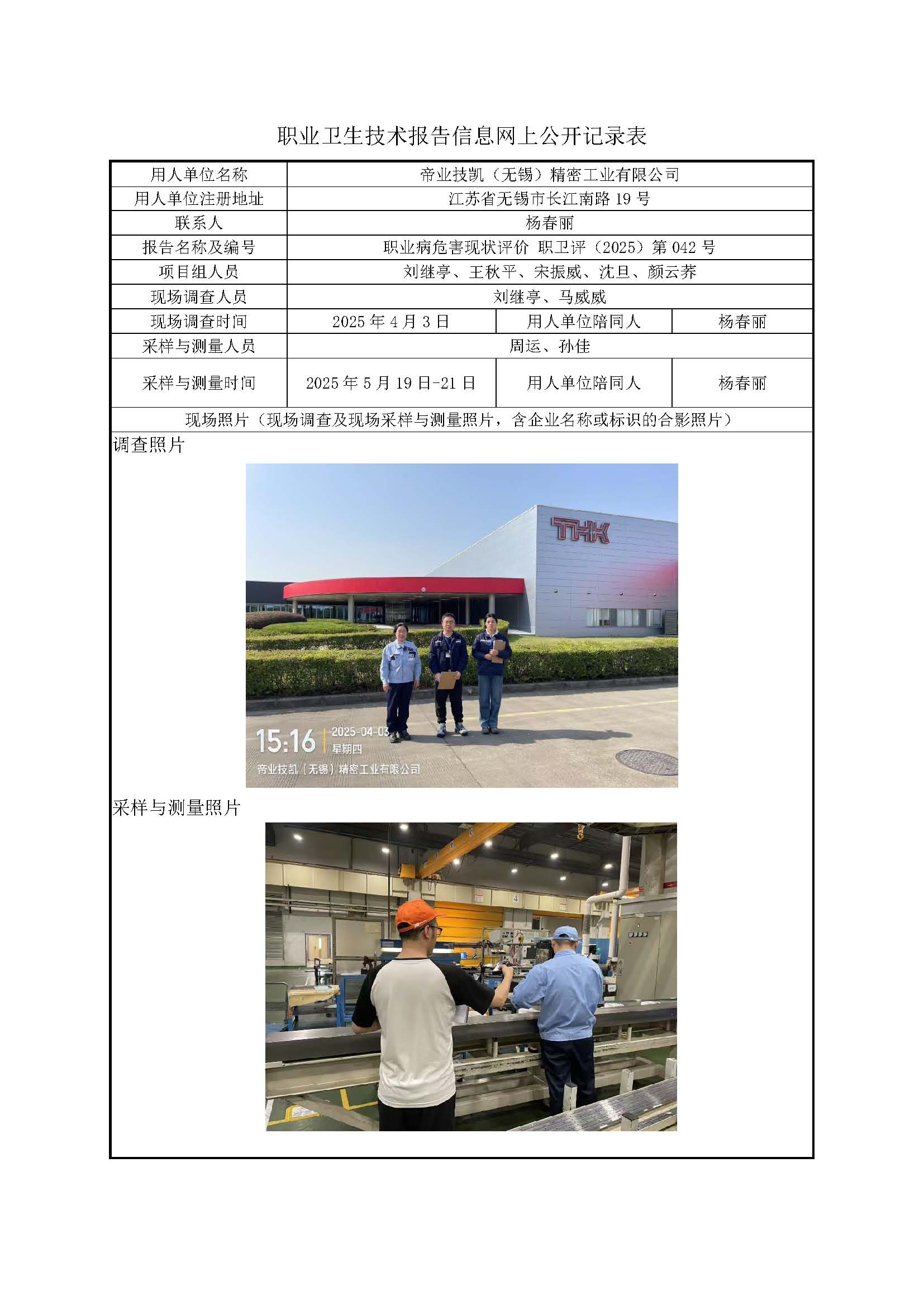 【职业卫生报告】帝业技凯(无锡)精密工业有限公司