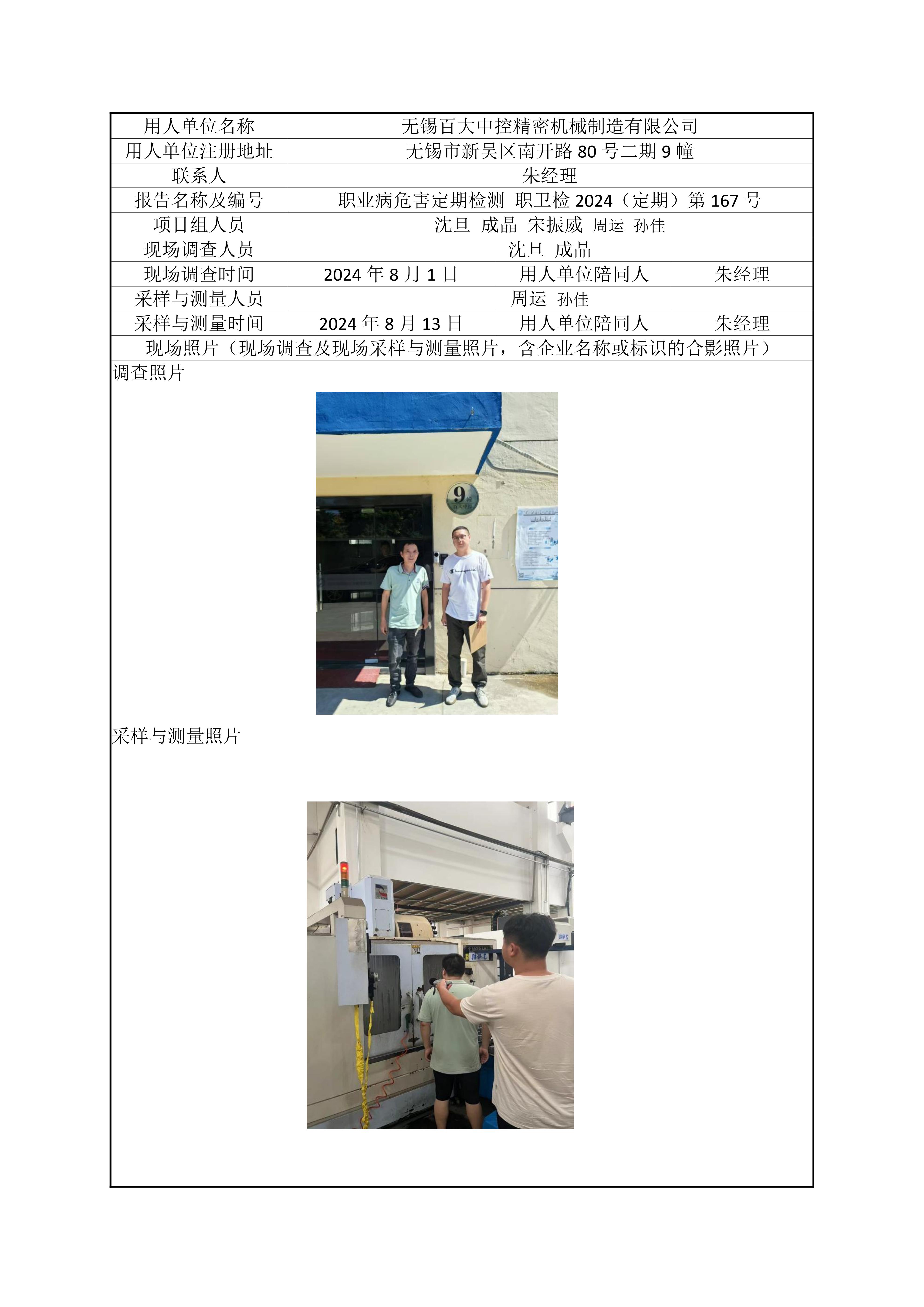 【职业卫生报告】无锡百大中控精密机械制造有限公司