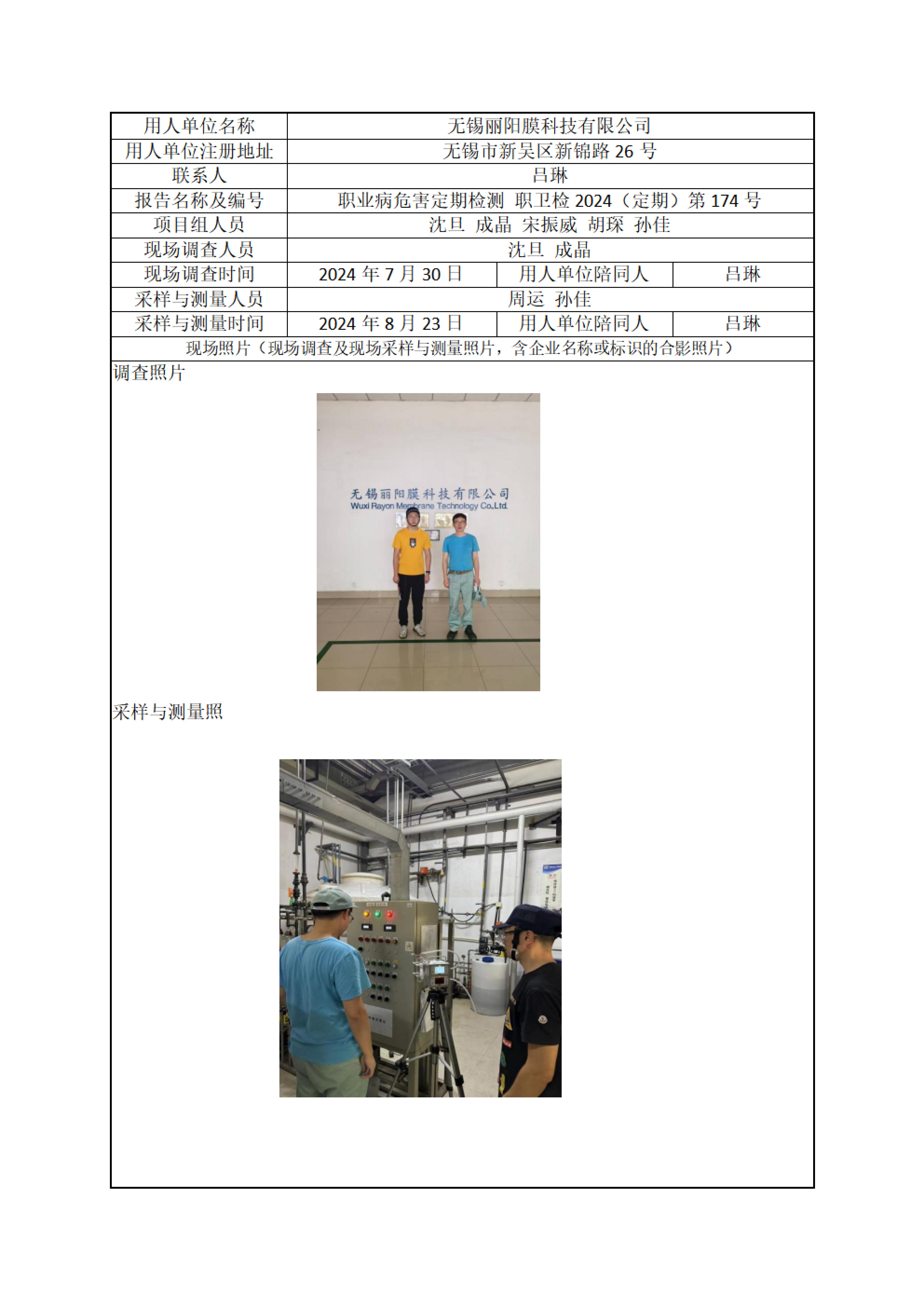 【职业卫生报告】无锡丽阳膜科技有限公司