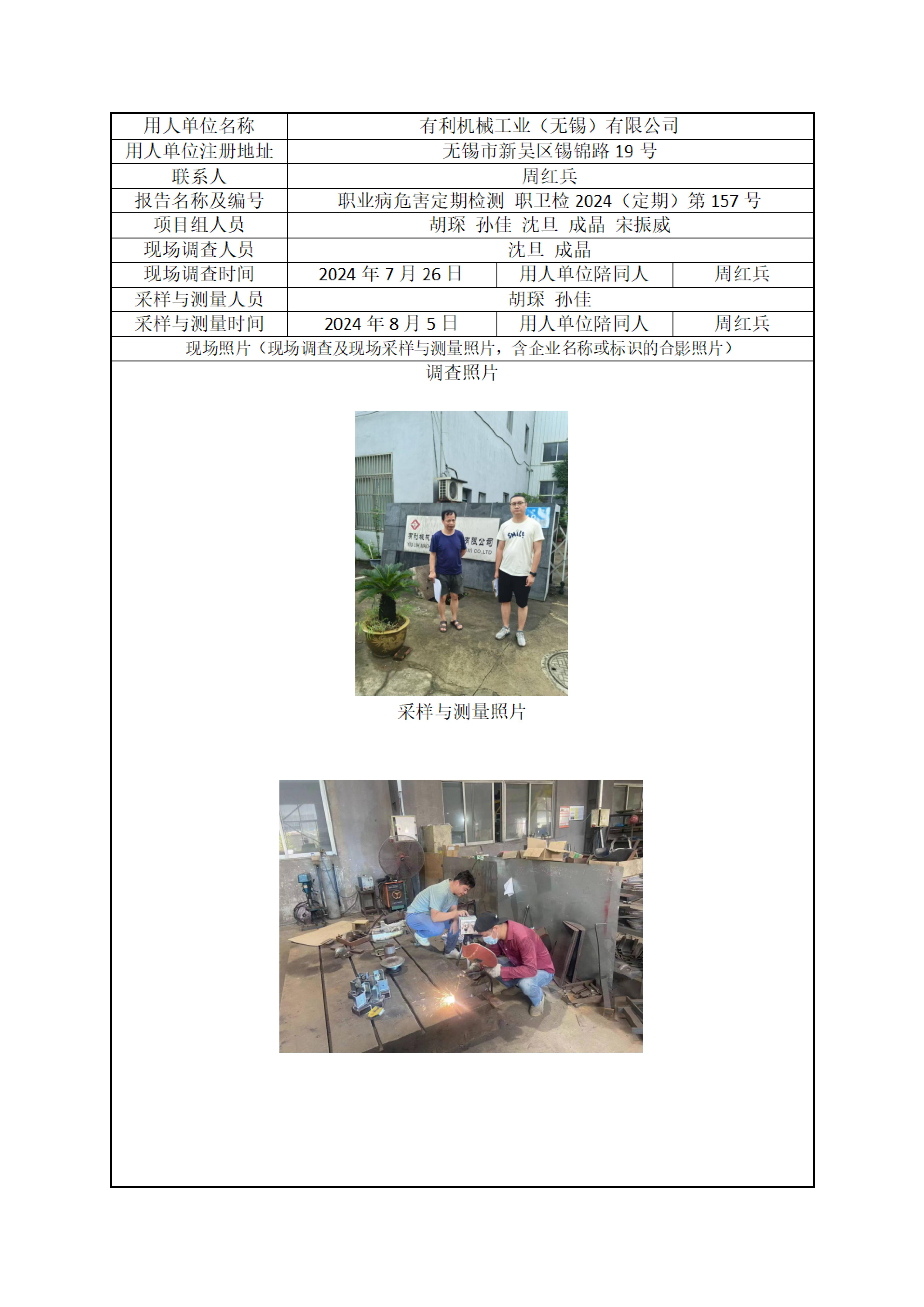 【职业卫生报告】有利机械工业(无锡)有限公司