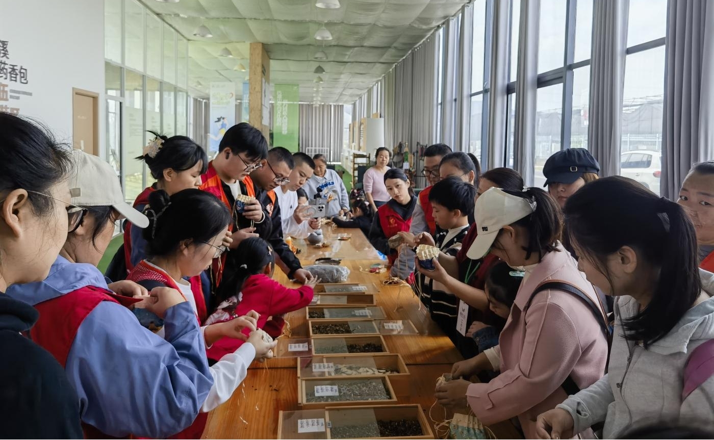在亲子互动环节中,在中药师的指导下,家长、孩子和志愿者一起制作香囊,按驱蚊、安神、助眠的配方,自主选择药材组合,完成填充后系上祝福卡片,成品带回家留作纪念。孩子们在制作互动中收获了快乐,激发了探索兴趣。整个过程中,孩子们展现了高昂的参与热情、脸上洋溢着灿烂的笑容,不仅有效提升了感知能力和语言表达能力,也在亲子协作中增进了情感联结。