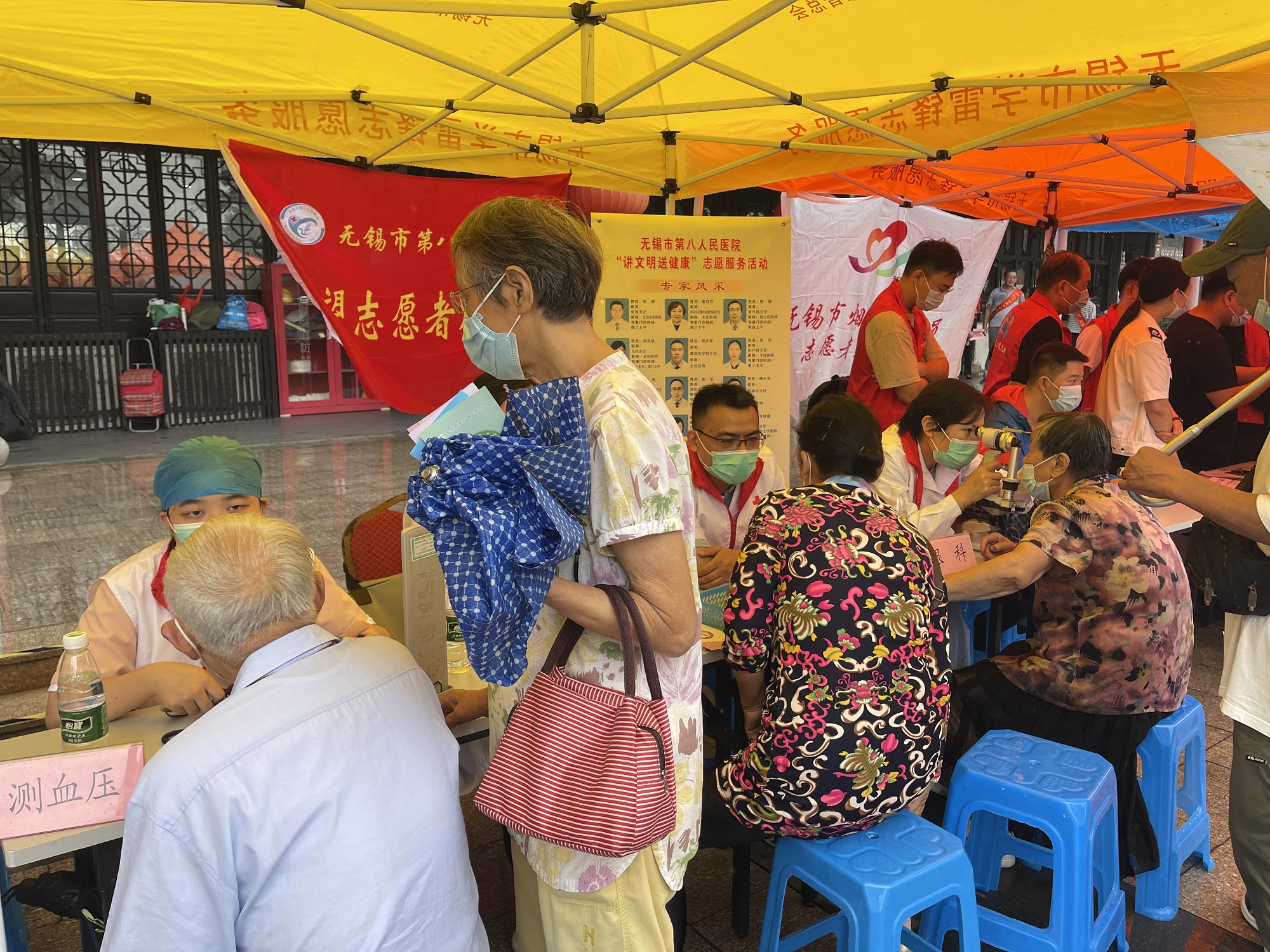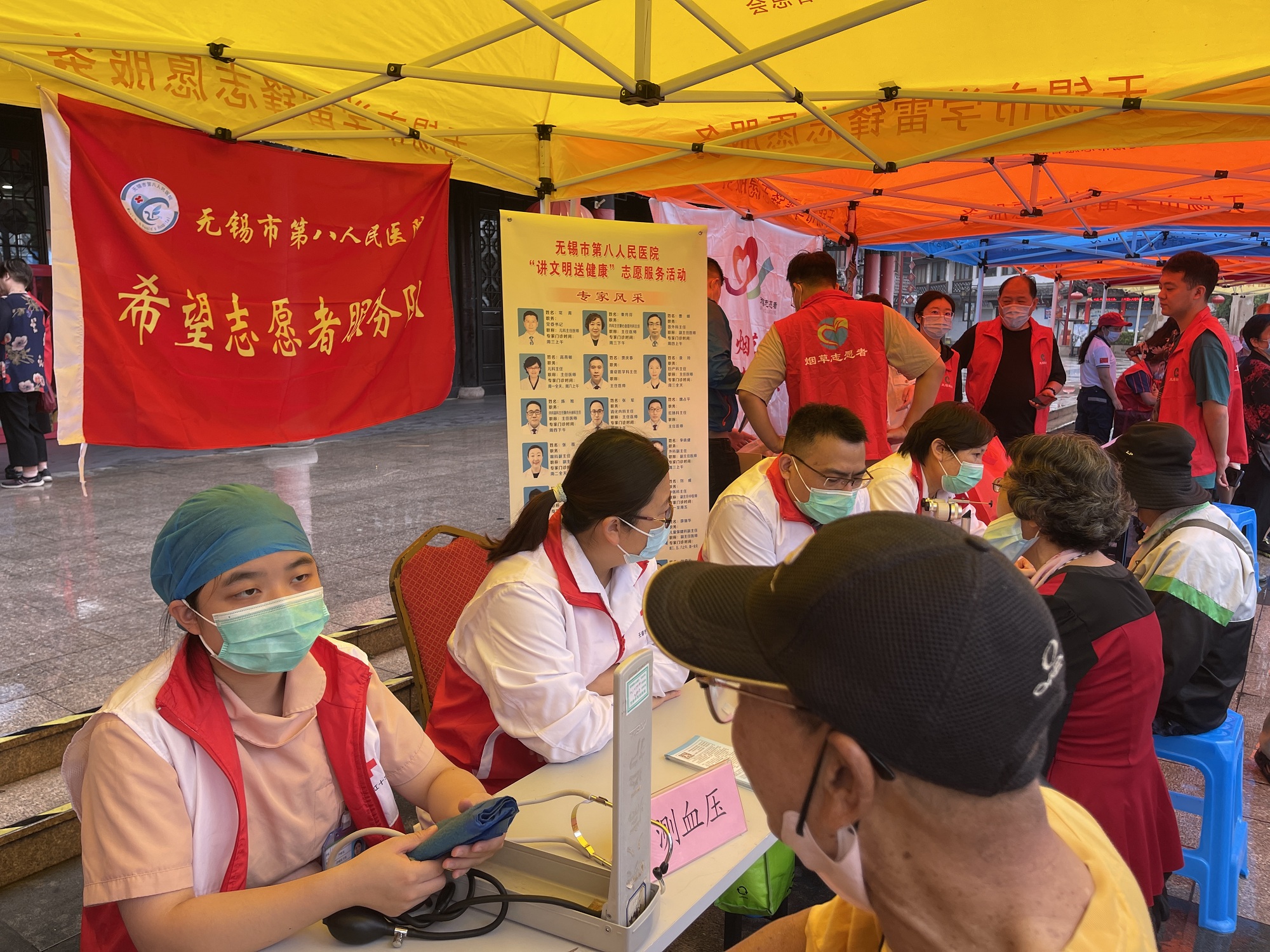 活动当天,天空下起了小雨,在活动广场,外科、眼科、疼痛科等多个科室志愿者为前来的市民朋友耐心解答问题,免费测量血压,送去贴心的关爱。特别是对于老年人关注的慢性病和常见病,大家也细心给出专业建议。